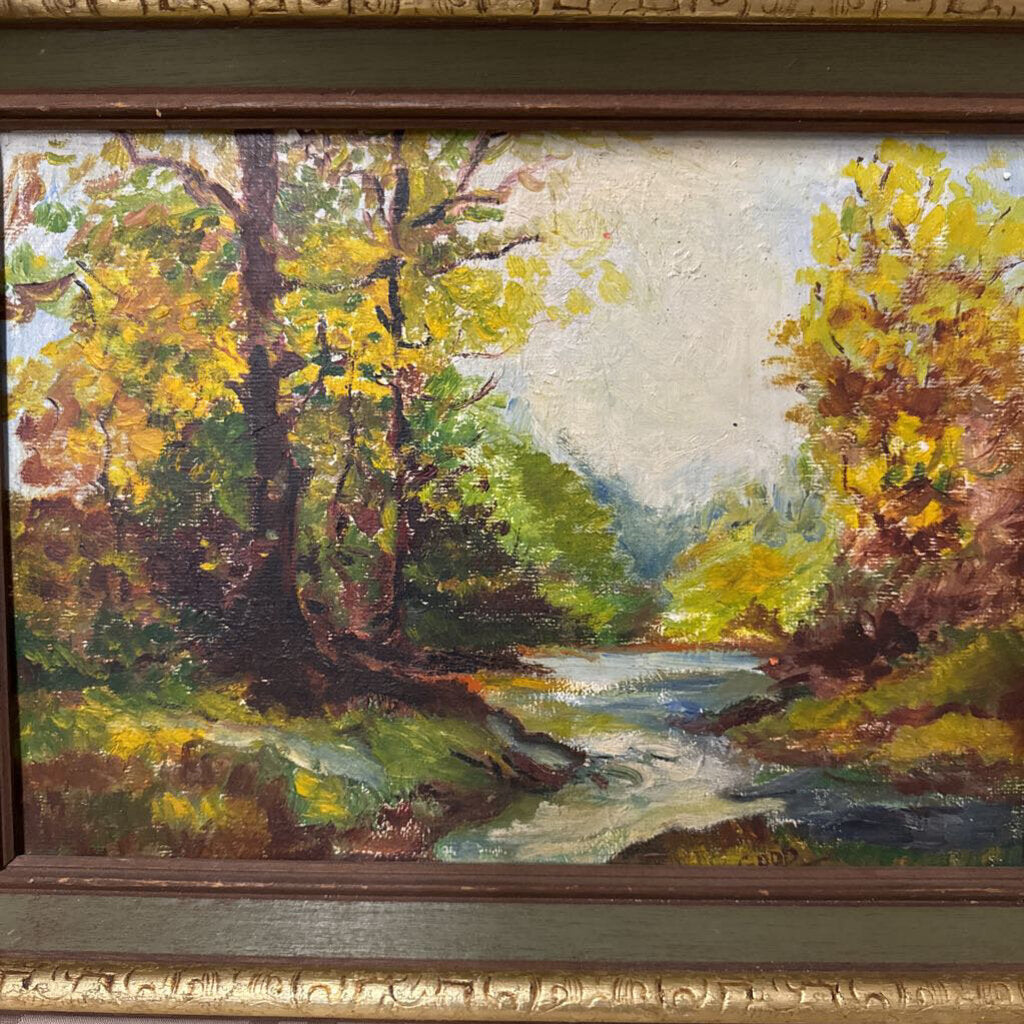 'By the Stream' Original Oil on Board - Gold Frame