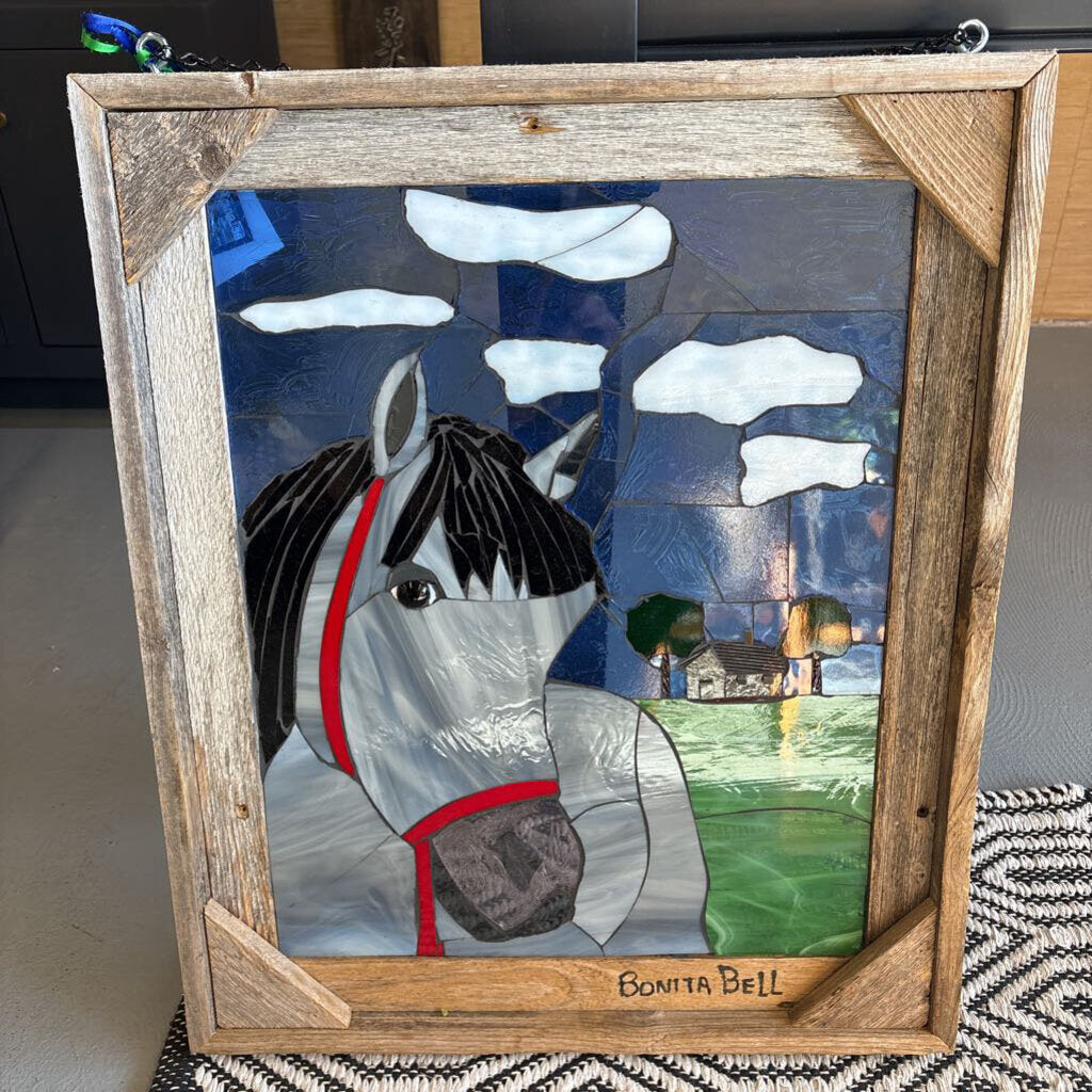 "Down on the Farm" Stained Glass in Rustic Frame by Local Artist Bonita Bell