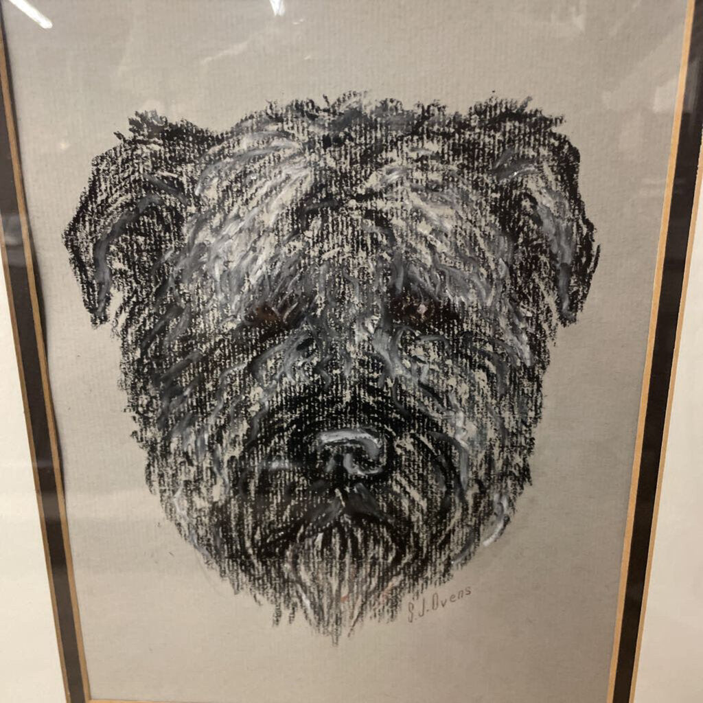 Framed Pen & Ink Image Of Terrier By B.J. Owens