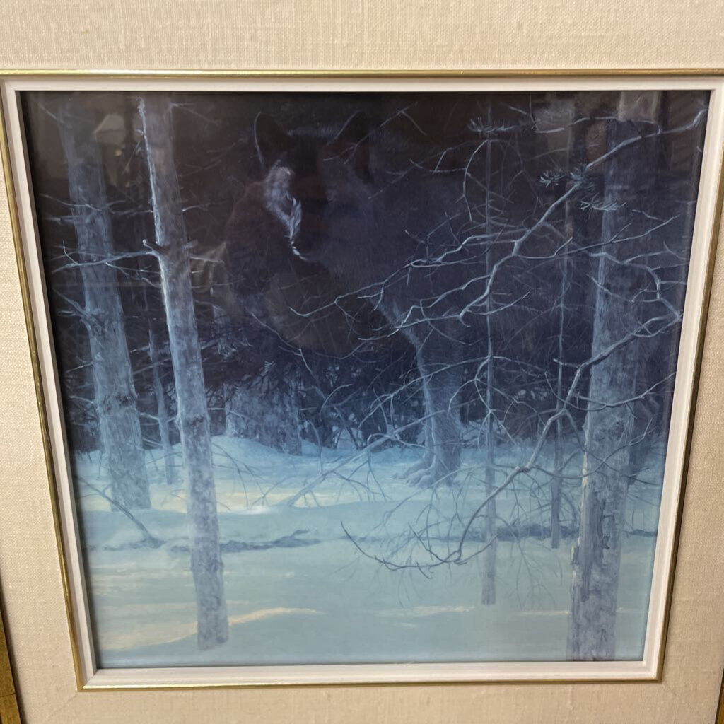 "Midnight Black Wolf" Limited Edition Print By Robert Bateman- In Dark Wood Frame