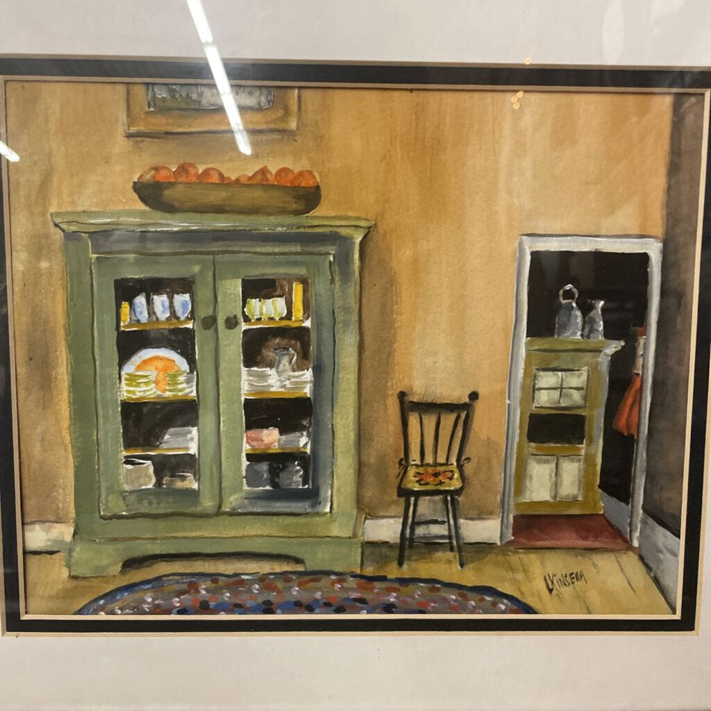 Original WAtercolour Of A Kitchen Scene By Artist V. Wilson