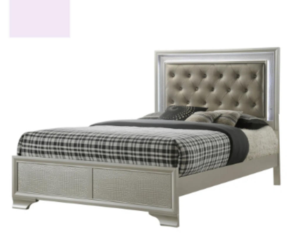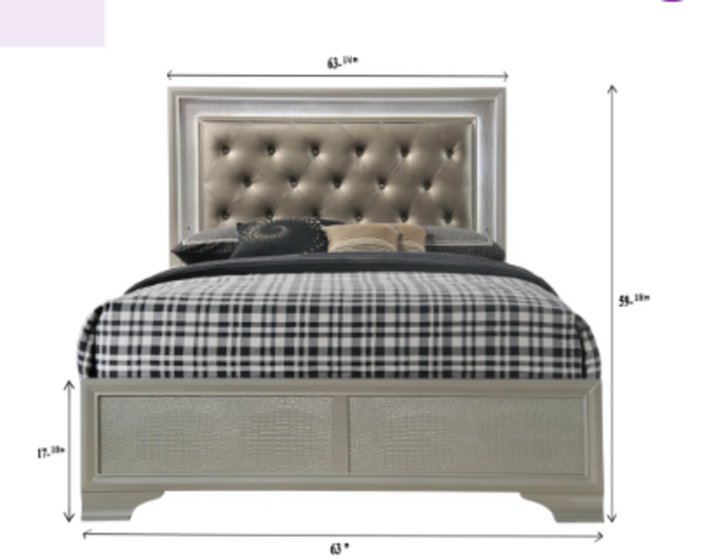 NEW Silver Tufted Queen Bed Frame - HB FB Rails, Slats