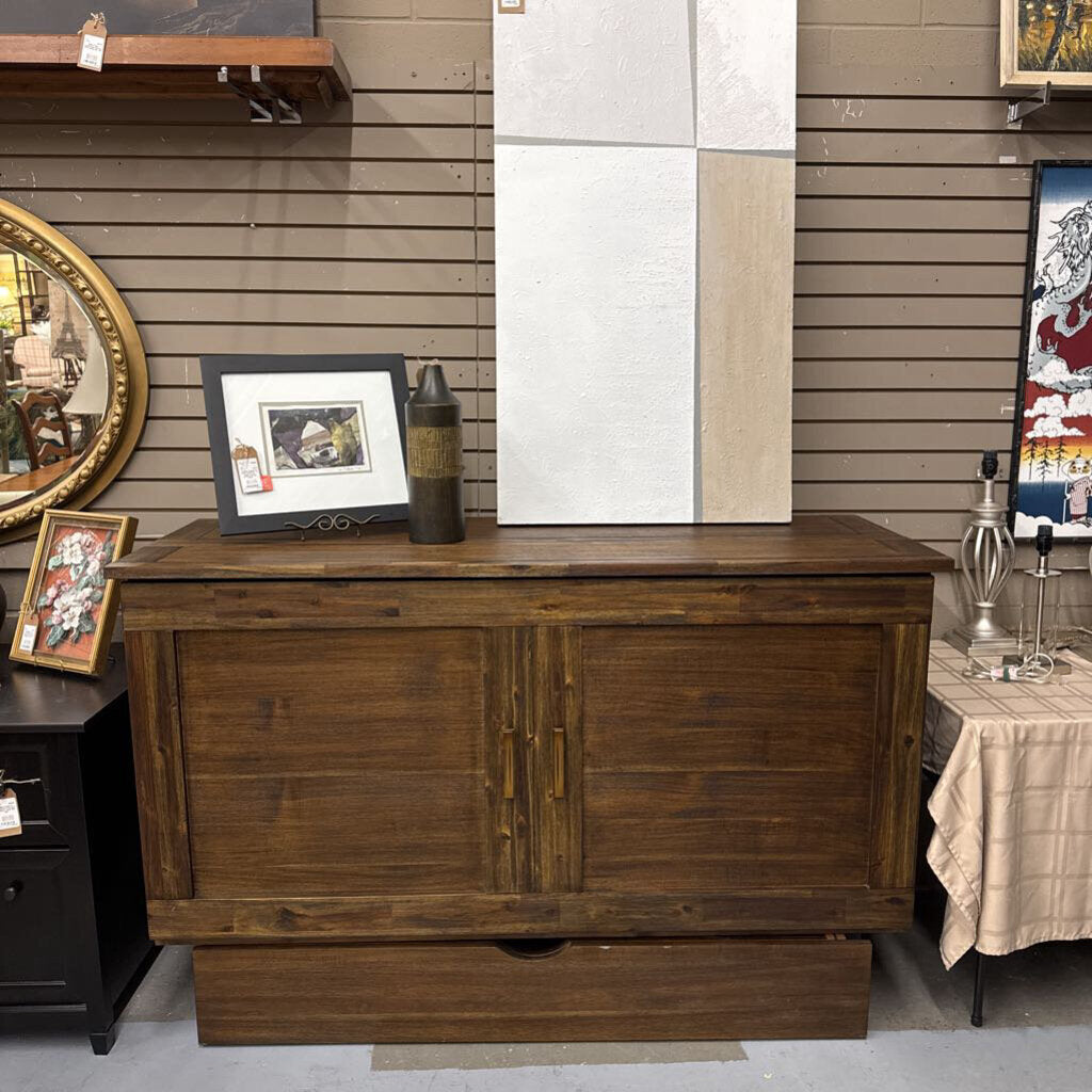 Queen Size Murphy Bed Cabinet (BENNETT'S) - Mattress NEW