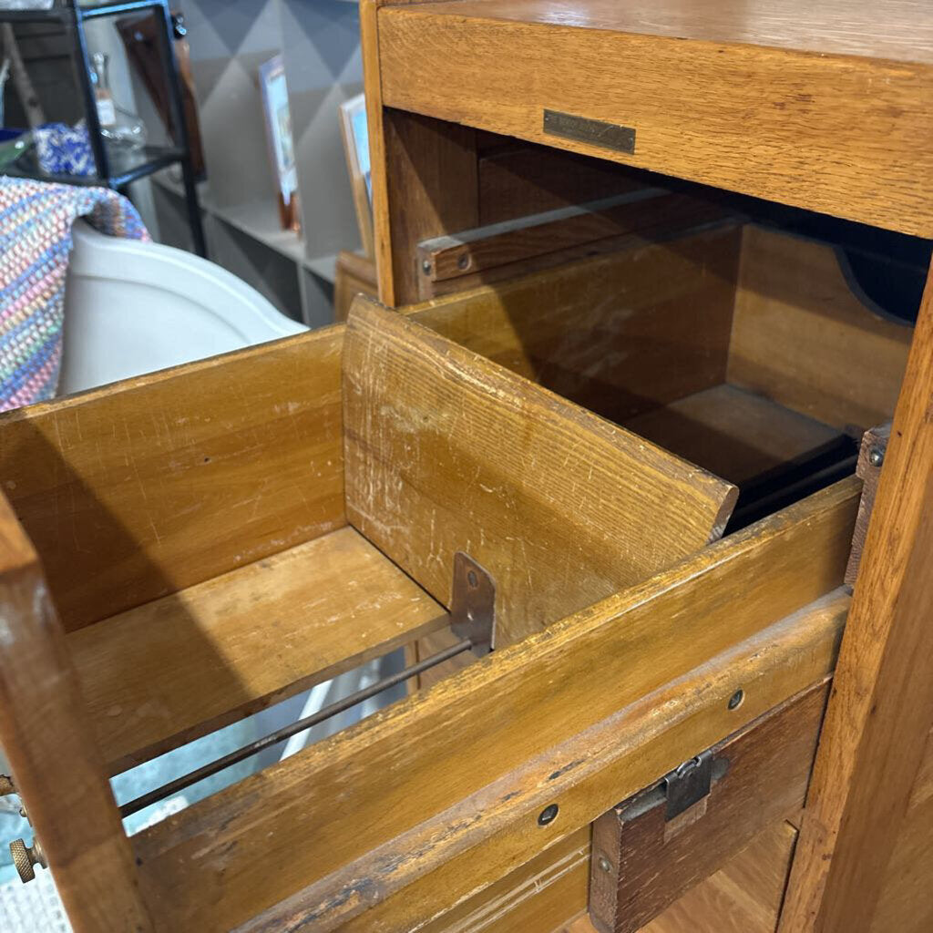 Antique Solid Oak 4-Drawer Filing Cabinet