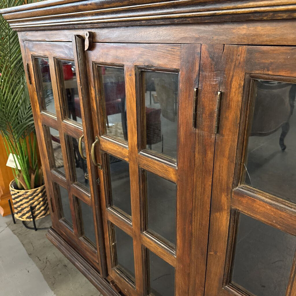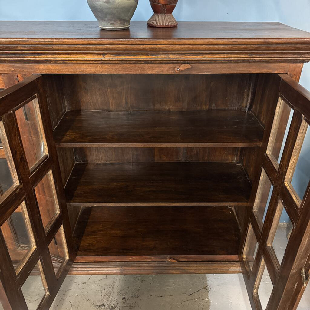 Rustic Hardwood Glass Front Sideboard - Small Crack