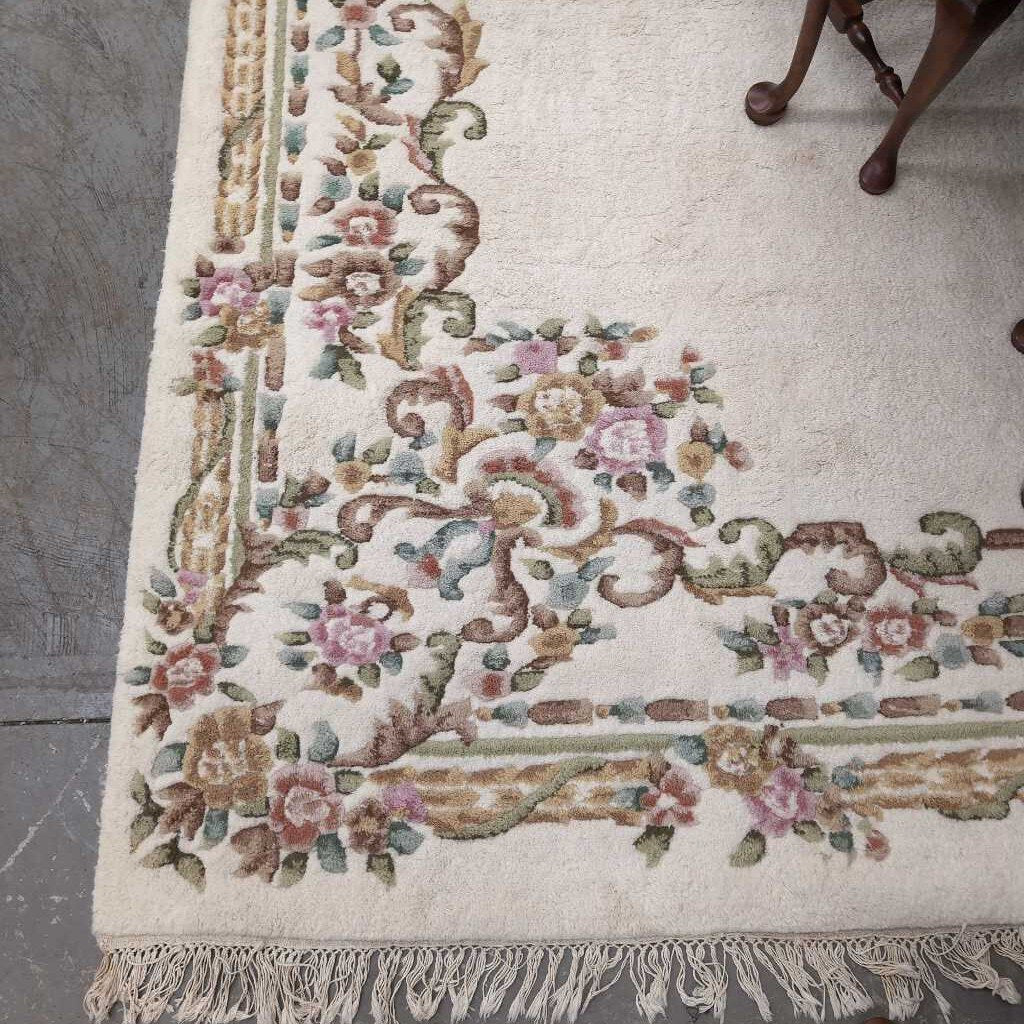 Exclusive Hand Knotted 100% Wool Carpet w Pastel Flowers & Fringe