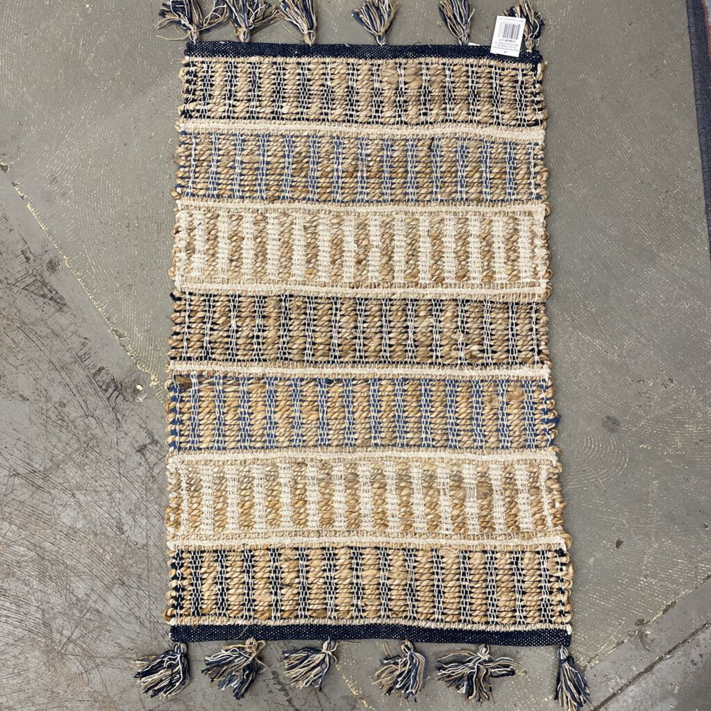 Jute & Blue Cotton Striped Rug w Tassels IMT017