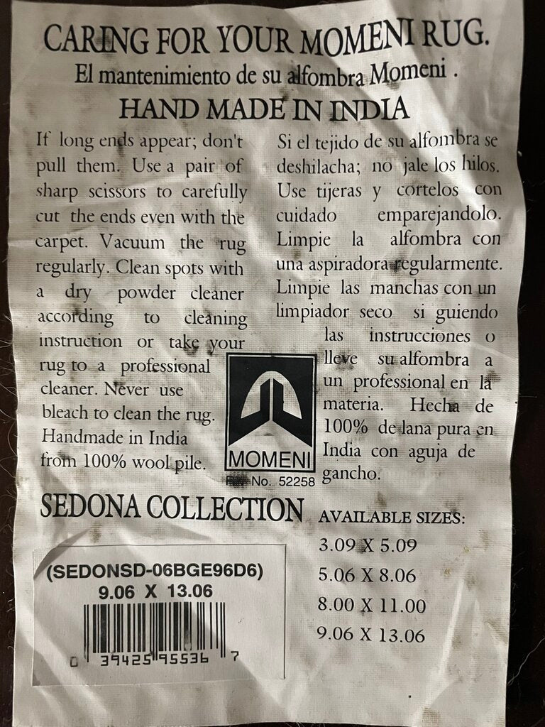 {"id":12253665788222,"title":"Sedona Collection 100% Wool Hand Knotted Carpet Rug - India","handle":"sedona-collection-100-wool-hand-knotted-carpet-rug-india-b1ae0","description":"\u003cul\u003e\n \u003cli\u003e\n\u003cstrong\u003eSKU:\u003c\/strong\u003e 31EA8B-11308\u003c\/li\u003e\n \u003cli\u003e\n\u003cstrong\u003eBrand:\u003c\/strong\u003e MOMENI\u003c\/li\u003e\n \u003cli\u003e\n\u003cstrong\u003eSize:\u003c\/strong\u003e 9.06 x 13.06\u003c\/li\u003e\n \u003cli\u003e\n\u003cstrong\u003eColor:\u003c\/strong\u003e Tan Green Brown\u003c\/li\u003e\n \u003cli\u003e\n\u003cstrong\u003eCategory:\u003c\/strong\u003e CARPETS\u003c\/li\u003e\n \u003c\/ul\u003e","published_at":"2026-02-03T17:13:32-05:00","created_at":"2026-02-03T17:13:03-05:00","vendor":"MOMENI","type":"CARPETS","tags":["9.06 x 13.06","ACTIVE","CARPETS","Location: The Carson House","MOMENI","Tan Green Brown"],"price":76650,"price_min":76650,"price_max":76650,"available":true,"price_varies":false,"compare_at_price":109500,"compare_at_price_min":109500,"compare_at_price_max":109500,"compare_at_price_varies":false,"variants":[{"id":52968533492030,"title":"9.06 x 13.06 \/ Tan Green Brown","option1":"9.06 x 13.06","option2":"Tan Green Brown","option3":null,"sku":"31EA8B-11308","requires_shipping":false,"taxable":true,"featured_image":{"id":53620789248318,"product_id":12253665788222,"position":1,"created_at":"2026-04-05T00:25:34-04:00","updated_at":"2026-04-05T00:25:36-04:00","alt":null,"width":768,"height":1024,"src":"\/\/thecarsonhouse.ca\/cdn\/shop\/files\/177015681482828CE39E8HN9VZXDH6FUS.jpg?v=1775363136","variant_ids":[52968533492030]},"available":true,"name":"Sedona Collection 100% Wool Hand Knotted Carpet Rug - India - 9.06 x 13.06 \/ Tan Green Brown","public_title":"9.06 x 13.06 \/ Tan Green Brown","options":["9.06 x 13.06","Tan Green Brown"],"price":76650,"weight":0,"compare_at_price":109500,"inventory_quantity":1,"inventory_management":"shopify","inventory_policy":"deny","barcode":null,"featured_media":{"alt":null,"id":44590447624510,"position":1,"preview_image":{"aspect_ratio":0.75,"height":1024,"width":768,"src":"\/\/thecarsonhouse.ca\/cdn\/shop\/files\/177015681482828CE39E8HN9VZXDH6FUS.jpg?v=1775363136"}},"requires_selling_plan":false,"selling_plan_allocations":[],"quantity_rule":{"min":1,"max":null,"increment":1}}],"images":["\/\/thecarsonhouse.ca\/cdn\/shop\/files\/177015681482828CE39E8HN9VZXDH6FUS.jpg?v=1775363136","\/\/thecarsonhouse.ca\/cdn\/shop\/files\/17701570531141UA5MFCC2Q3NQNIBES84.jpg?v=1775363136","\/\/thecarsonhouse.ca\/cdn\/shop\/files\/1770156827557ID5GQFN78XVCN8XTZK1U.jpg?v=1775363136","\/\/thecarsonhouse.ca\/cdn\/shop\/files\/1770156835047XC85UM3P3DYPJ5NLZ5T7.jpg?v=1775363136"],"featured_image":"\/\/thecarsonhouse.ca\/cdn\/shop\/files\/177015681482828CE39E8HN9VZXDH6FUS.jpg?v=1775363136","options":["Size","Color"],"media":[{"alt":null,"id":44590447624510,"position":1,"preview_image":{"aspect_ratio":0.75,"height":1024,"width":768,"src":"\/\/thecarsonhouse.ca\/cdn\/shop\/files\/177015681482828CE39E8HN9VZXDH6FUS.jpg?v=1775363136"},"aspect_ratio":0.75,"height":1024,"media_type":"image","src":"\/\/thecarsonhouse.ca\/cdn\/shop\/files\/177015681482828CE39E8HN9VZXDH6FUS.jpg?v=1775363136","width":768},{"alt":null,"id":44590447657278,"position":2,"preview_image":{"aspect_ratio":1.333,"height":768,"width":1024,"src":"\/\/thecarsonhouse.ca\/cdn\/shop\/files\/17701570531141UA5MFCC2Q3NQNIBES84.jpg?v=1775363136"},"aspect_ratio":1.333,"height":768,"media_type":"image","src":"\/\/thecarsonhouse.ca\/cdn\/shop\/files\/17701570531141UA5MFCC2Q3NQNIBES84.jpg?v=1775363136","width":1024},{"alt":null,"id":44590447690046,"position":3,"preview_image":{"aspect_ratio":0.75,"height":1024,"width":768,"src":"\/\/thecarsonhouse.ca\/cdn\/shop\/files\/1770156827557ID5GQFN78XVCN8XTZK1U.jpg?v=1775363136"},"aspect_ratio":0.75,"height":1024,"media_type":"image","src":"\/\/thecarsonhouse.ca\/cdn\/shop\/files\/1770156827557ID5GQFN78XVCN8XTZK1U.jpg?v=1775363136","width":768},{"alt":null,"id":44590447722814,"position":4,"preview_image":{"aspect_ratio":0.75,"height":1024,"width":768,"src":"\/\/thecarsonhouse.ca\/cdn\/shop\/files\/1770156835047XC85UM3P3DYPJ5NLZ5T7.jpg?v=1775363136"},"aspect_ratio":0.75,"height":1024,"media_type":"image","src":"\/\/thecarsonhouse.ca\/cdn\/shop\/files\/1770156835047XC85UM3P3DYPJ5NLZ5T7.jpg?v=1775363136","width":768}],"requires_selling_plan":false,"selling_plan_groups":[],"content":"\u003cul\u003e\n \u003cli\u003e\n\u003cstrong\u003eSKU:\u003c\/strong\u003e 31EA8B-11308\u003c\/li\u003e\n \u003cli\u003e\n\u003cstrong\u003eBrand:\u003c\/strong\u003e MOMENI\u003c\/li\u003e\n \u003cli\u003e\n\u003cstrong\u003eSize:\u003c\/strong\u003e 9.06 x 13.06\u003c\/li\u003e\n \u003cli\u003e\n\u003cstrong\u003eColor:\u003c\/strong\u003e Tan Green Brown\u003c\/li\u003e\n \u003cli\u003e\n\u003cstrong\u003eCategory:\u003c\/strong\u003e CARPETS\u003c\/li\u003e\n \u003c\/ul\u003e"}