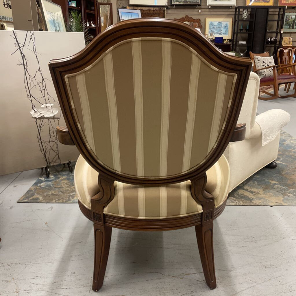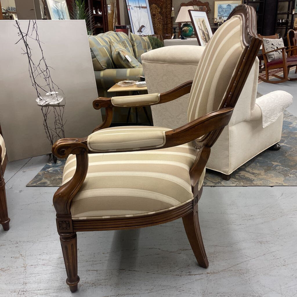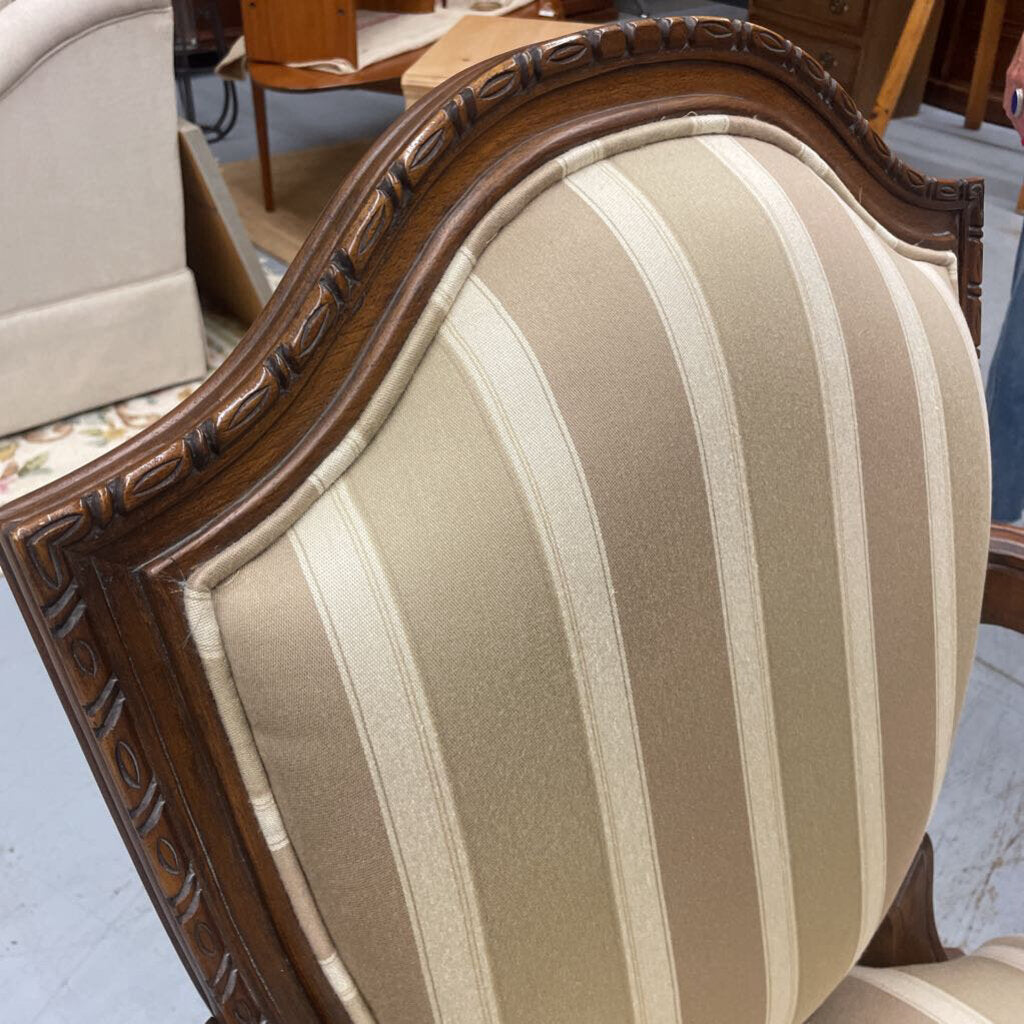 Louis XV French Country Walnut Claw Arm Chair w Cream Striped Satin Seat
