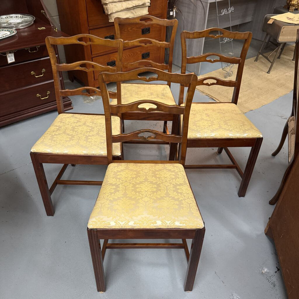 Set of 4 - Antique Mahogany Chairs w Cream Satin Seat