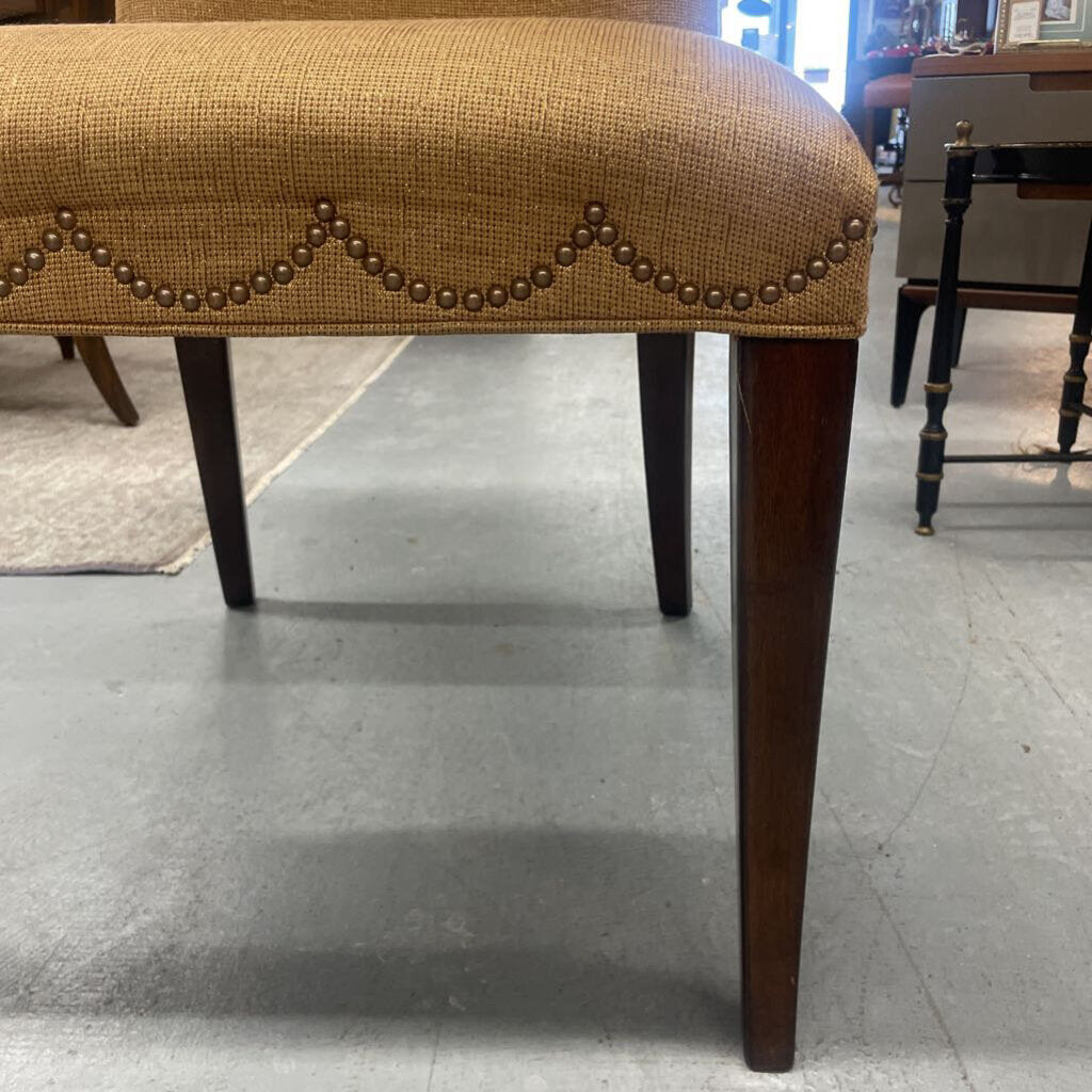 Set of 6 Camel Coloured Upholstered Dining Chairs w Antique Brass Nailhead Trim Line at the Bottom Edge