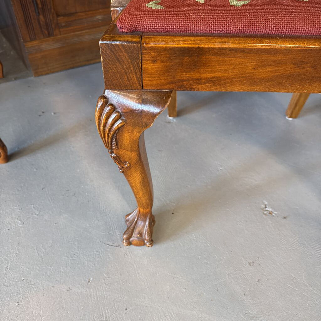 Walnut Armchair w Flowered Needlepoint Seat