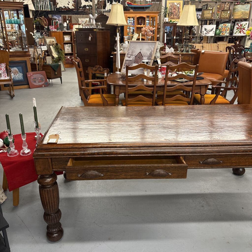 Antique Oak Desk w 2 Drawers