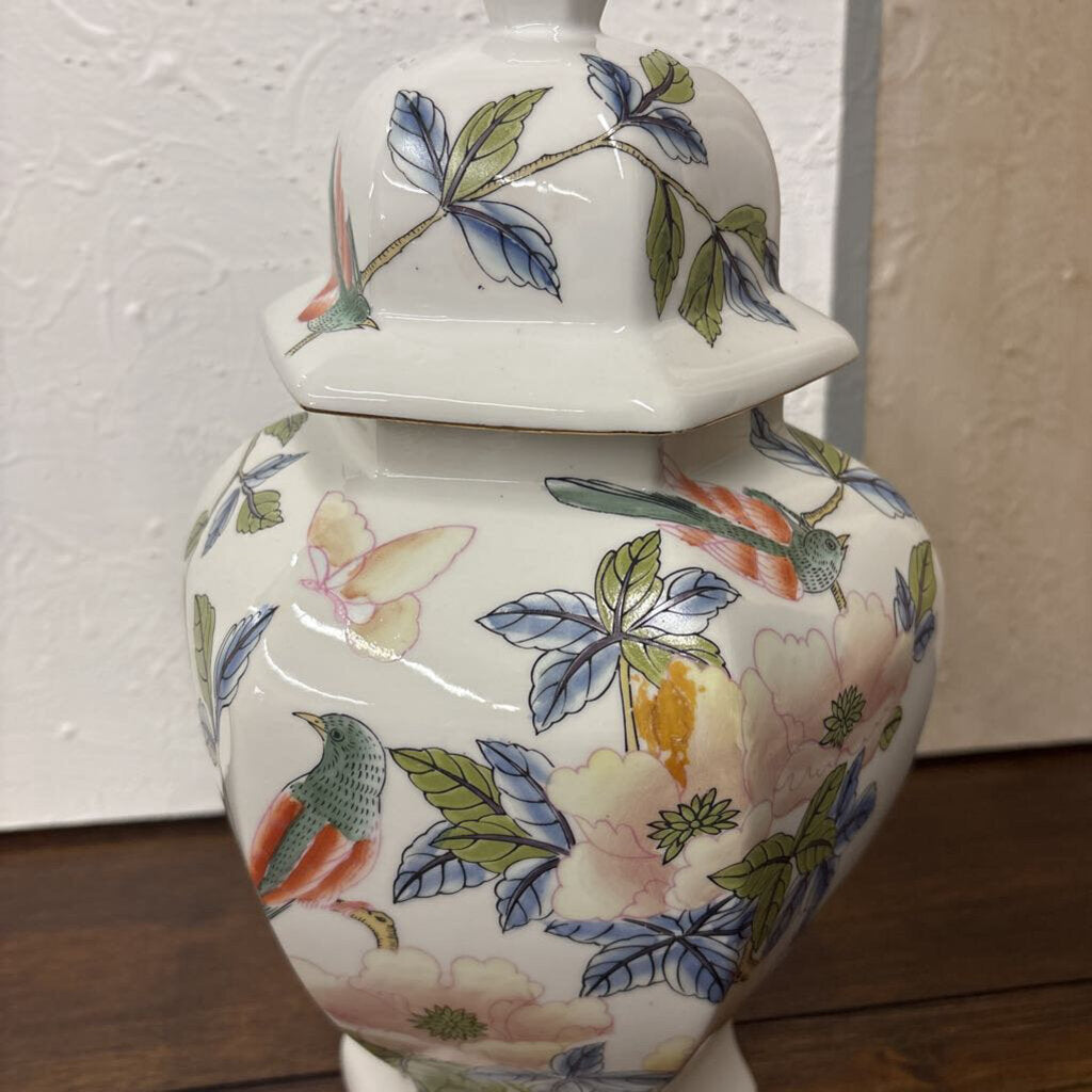 Aynsley Bone China Lidded Ginger Jar w Floral/ Bird Pattern