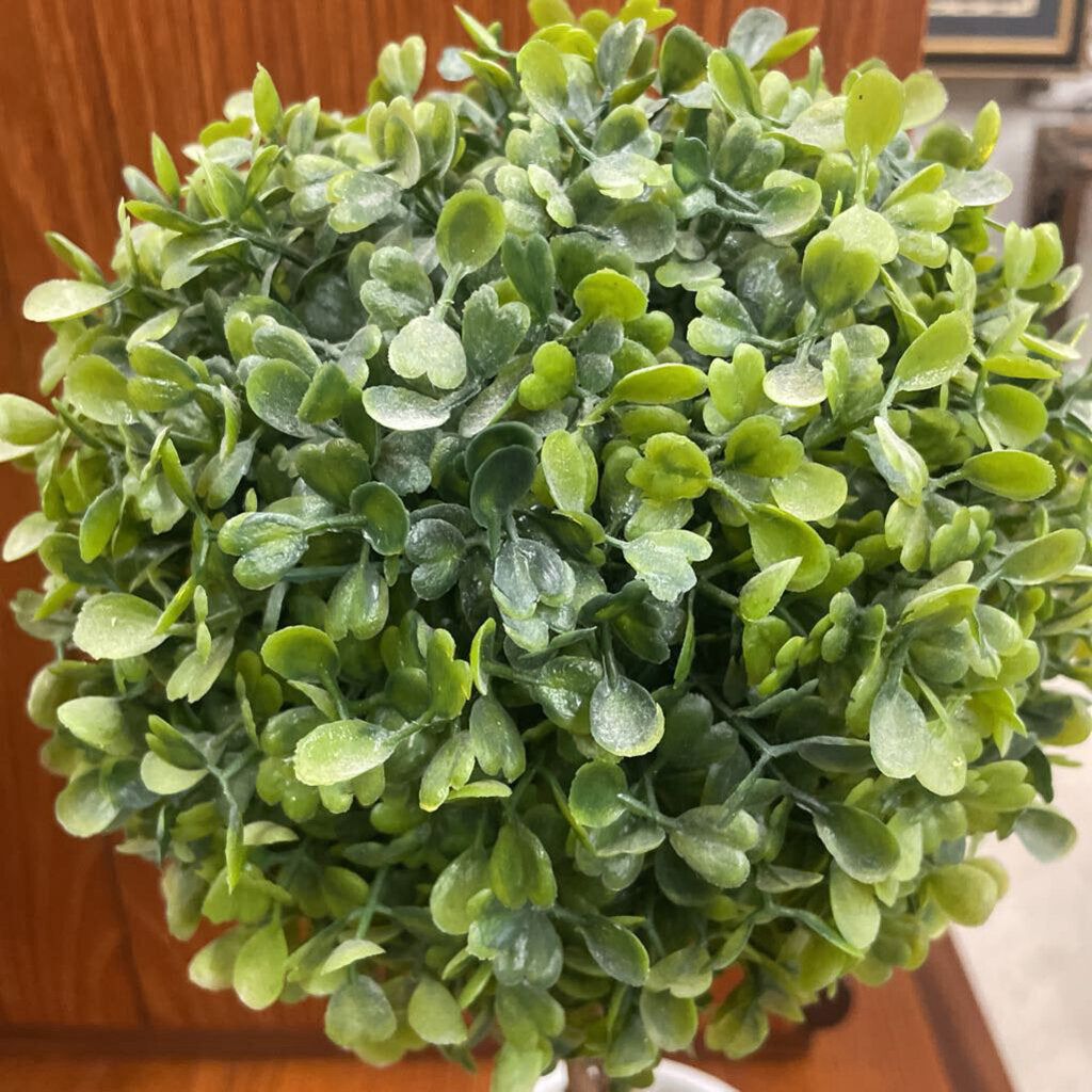 Decorative Boxwood Topiary Plant in White Pot ( chipped bottom)