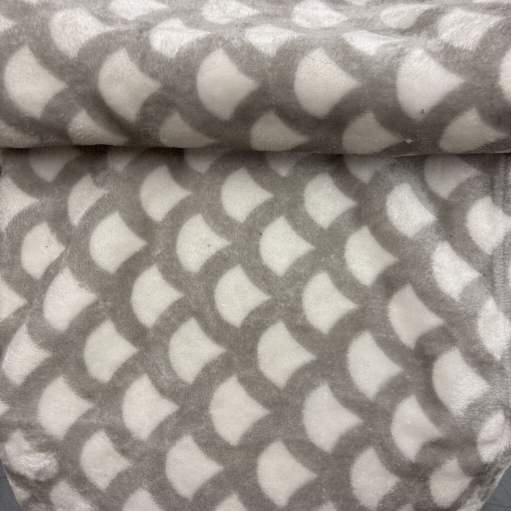 Plush Throw Blanket w a Gray & White Scalloped Pattern