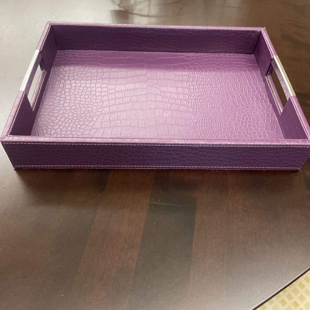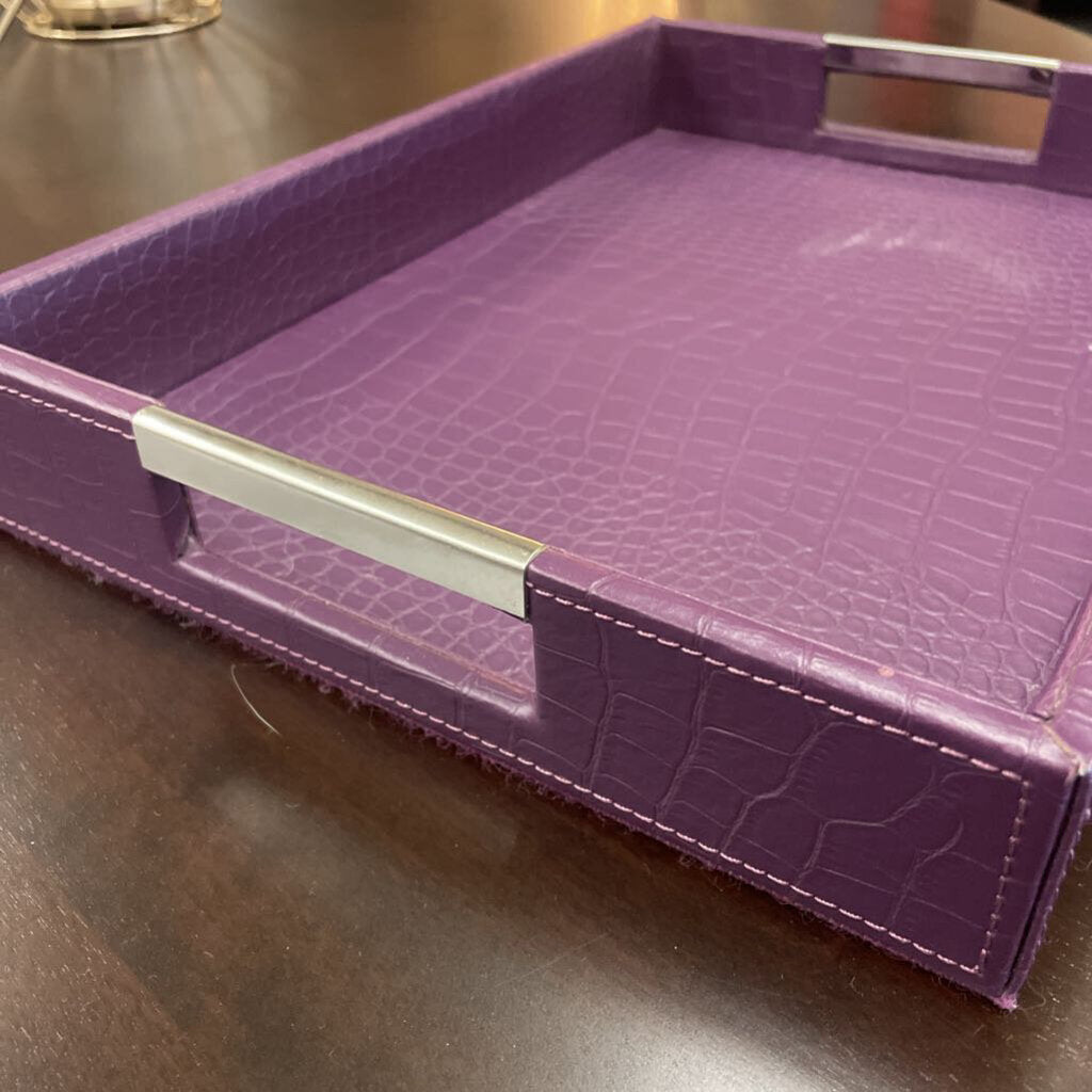 Purple Vegan Leather Tray with Chrome Handle Detail