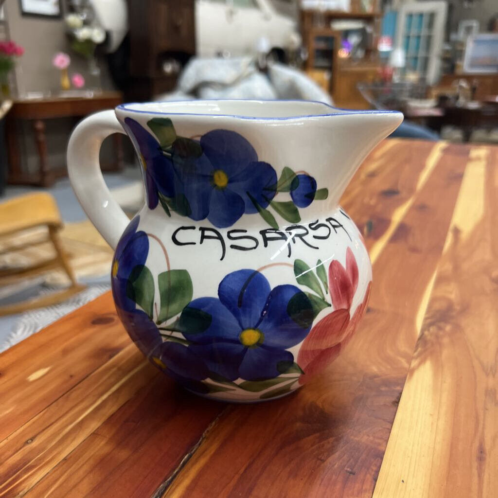 White Casarsa Wines Pitcher w Floral Design
