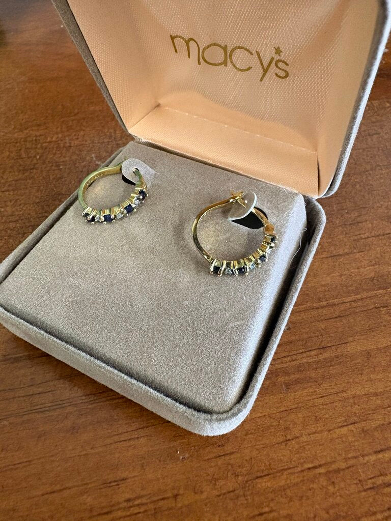 Gold Plated 3/4 ct. Sapphire & Diamond Hoop Earrings