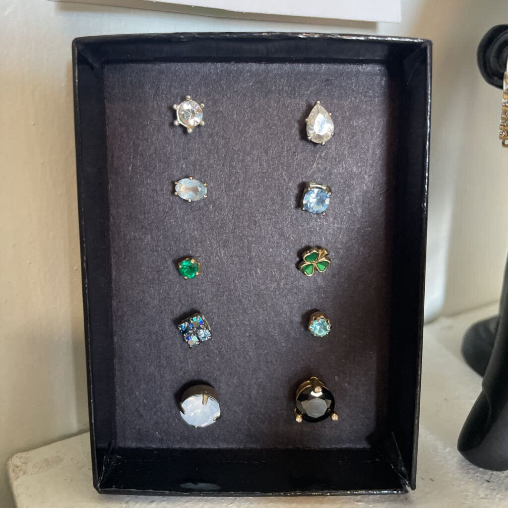 Various Gemstone + Enamel Singular Stud Earrings - Set of 10
