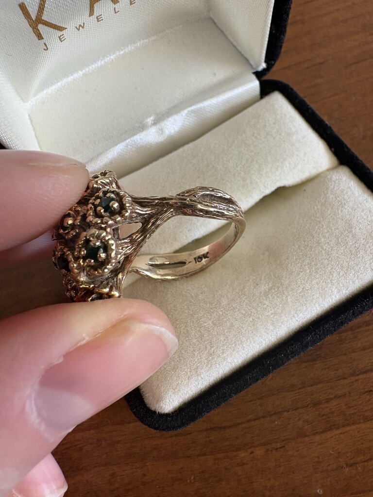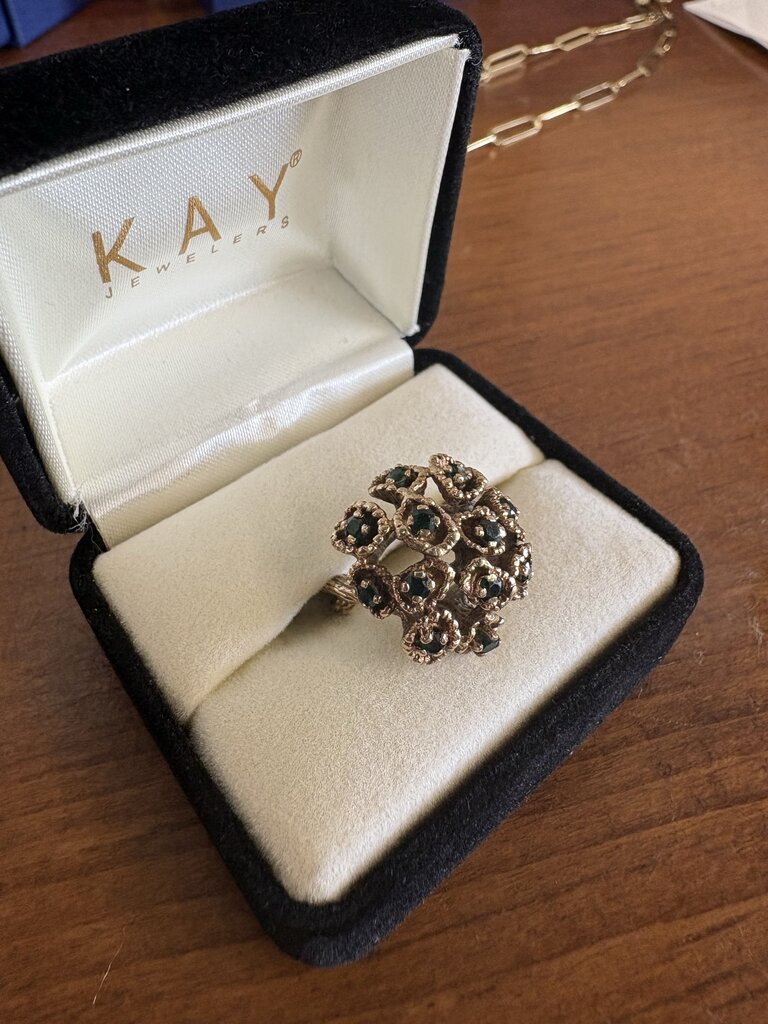 Vintage 10k Gold Emerald Cluster Cocktail Ring