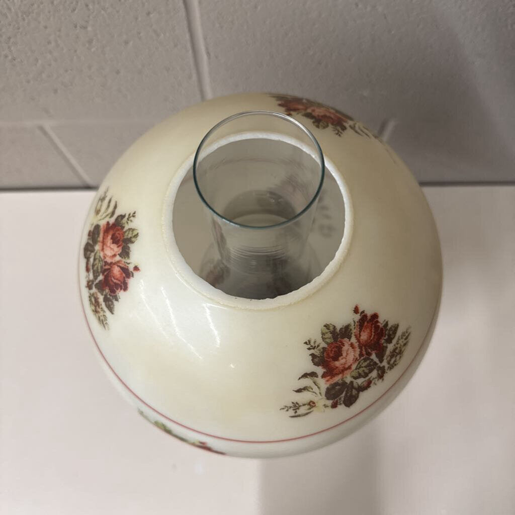 Antique Brass Parlor Oil Lamp w Floral Globe Shade & Hurricane