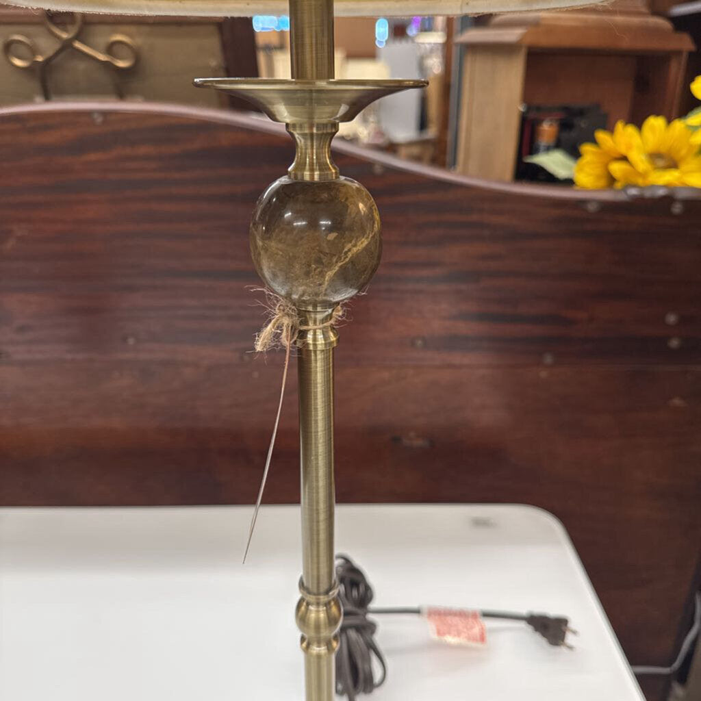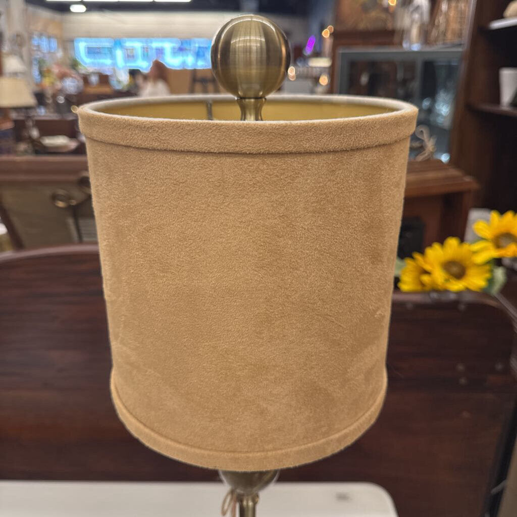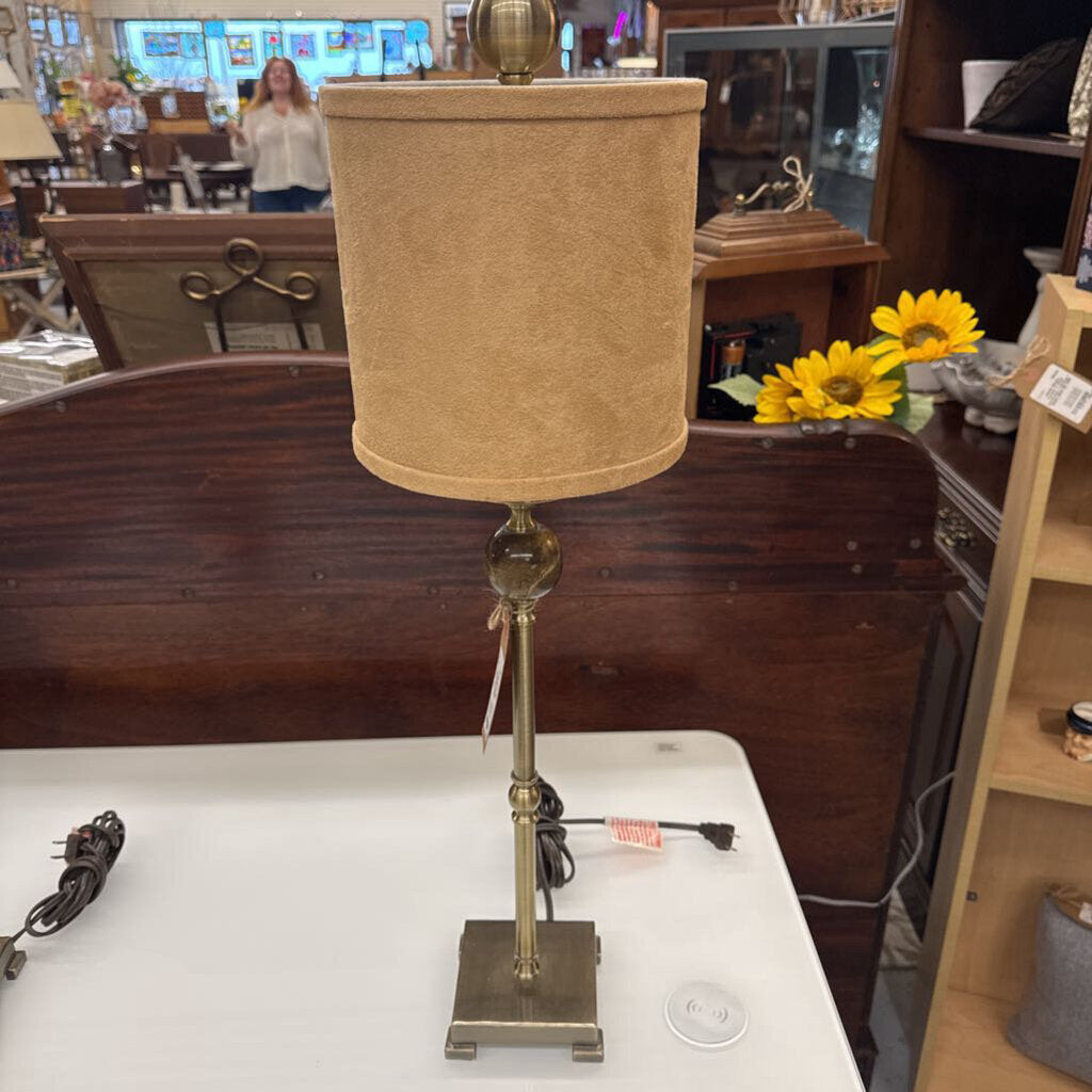 Table Lamp - Brushed Brass w Marble Ball, Microsuede Shade
