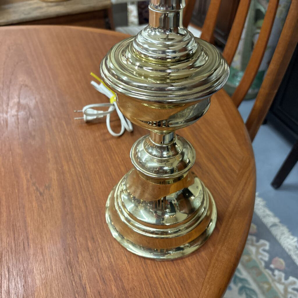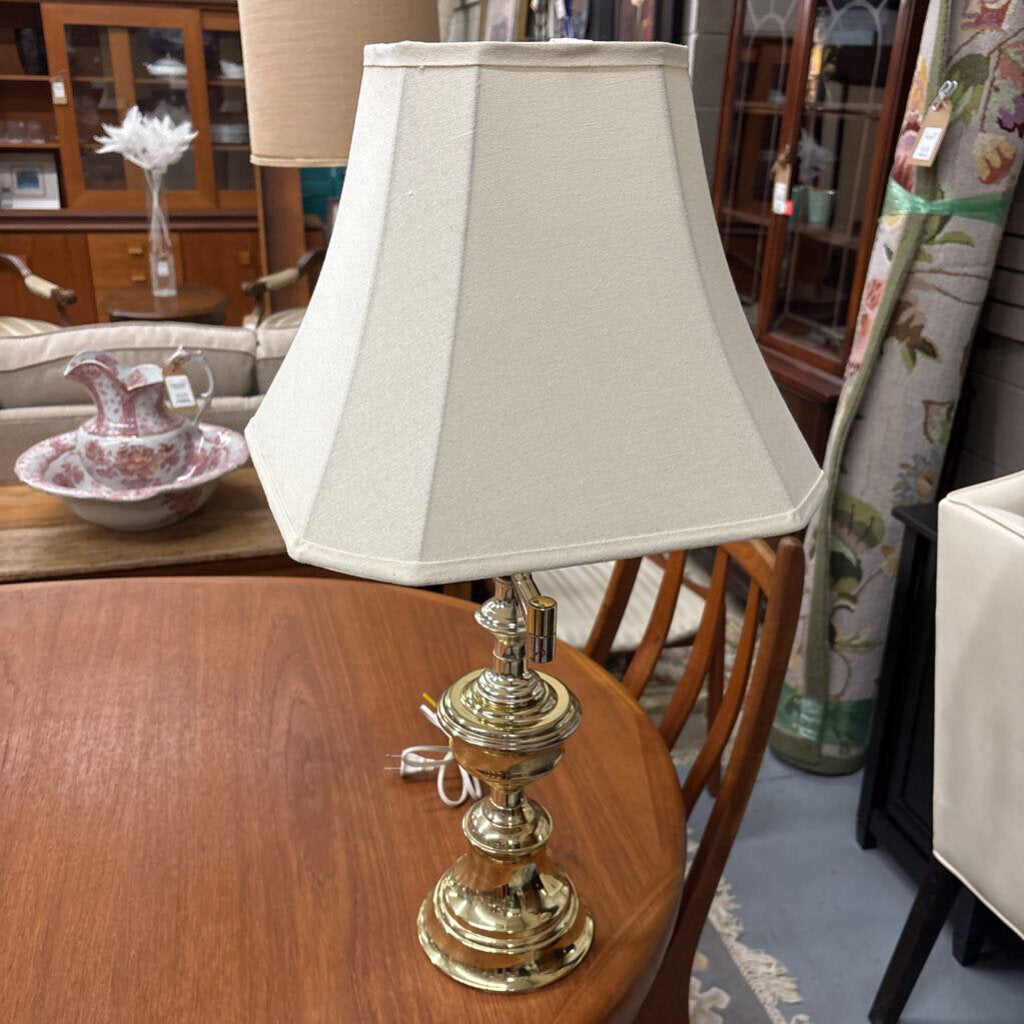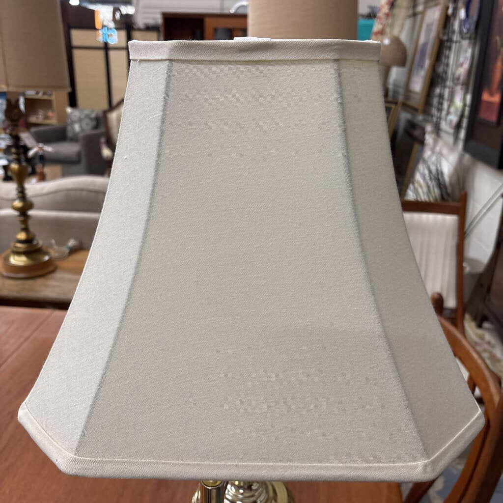 Vintage Brass Table Lamp w Swing Arm & Rectangular Beige Shade - Tri-Lite