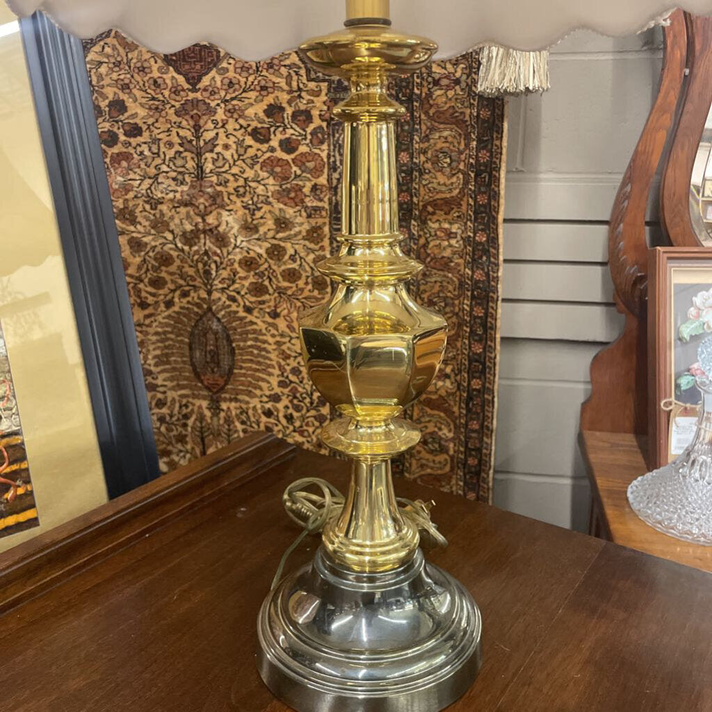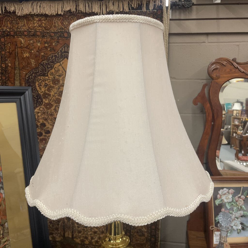 Vintage Brass Table Lamp w White Scalloped Edge Shade