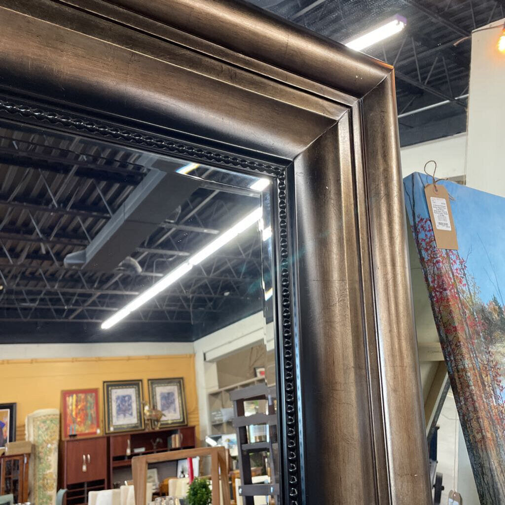 Standing Floor Mirror (Large) w Silver & Black Wide Frame