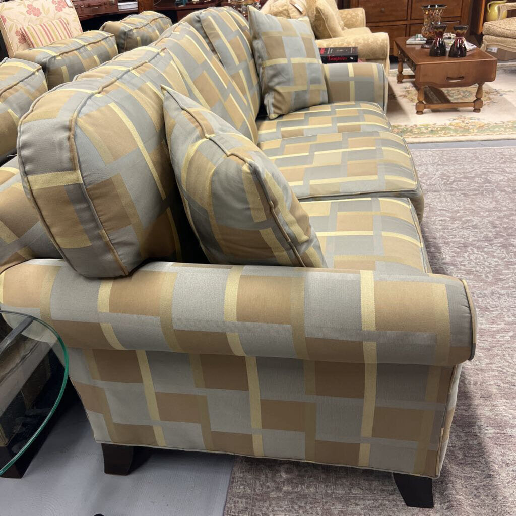 Highland Furniture Taupe & Blue Checked Contemporary Sofa- Feather Filled