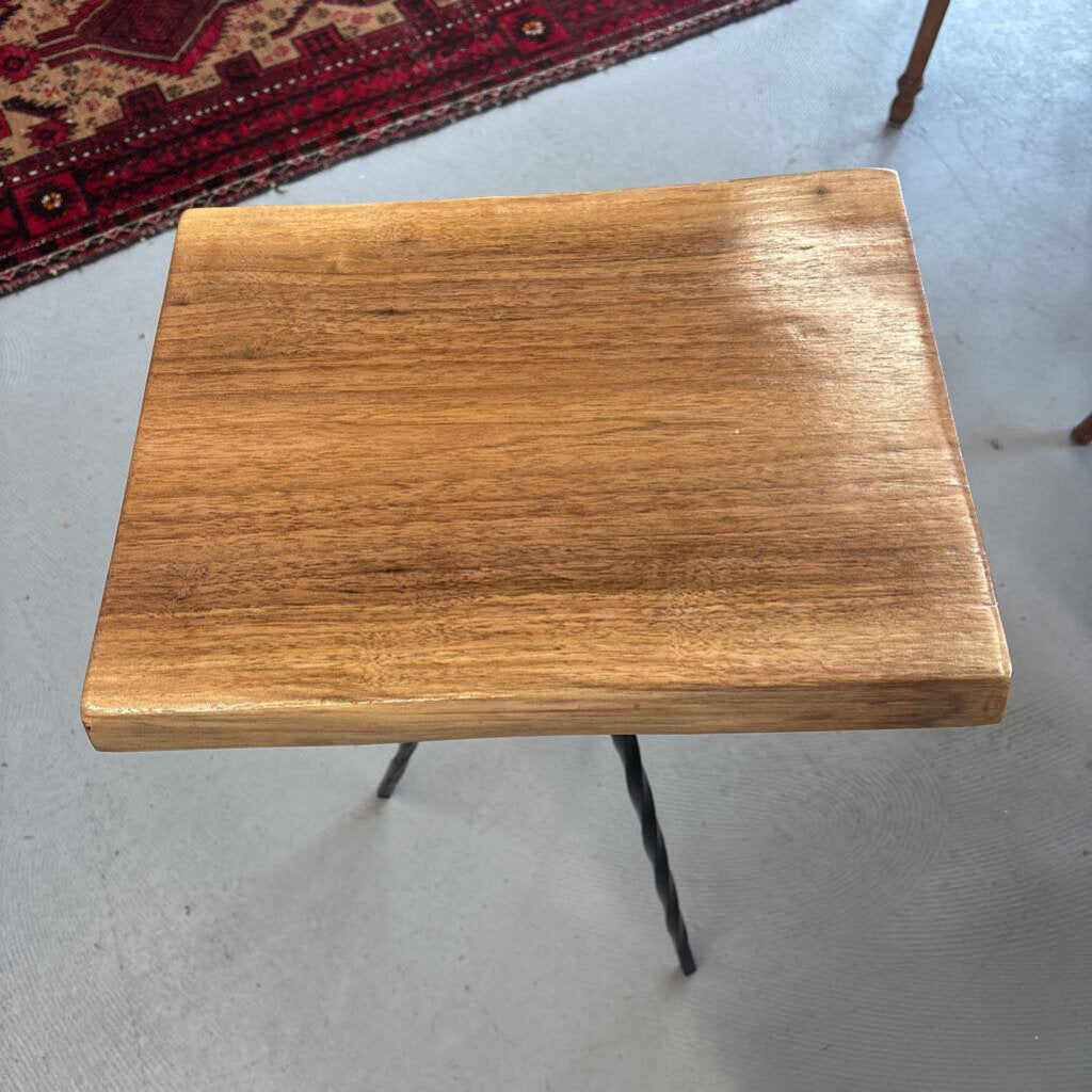 Indoor/Outdoor Walnut Side Table w Metal Base