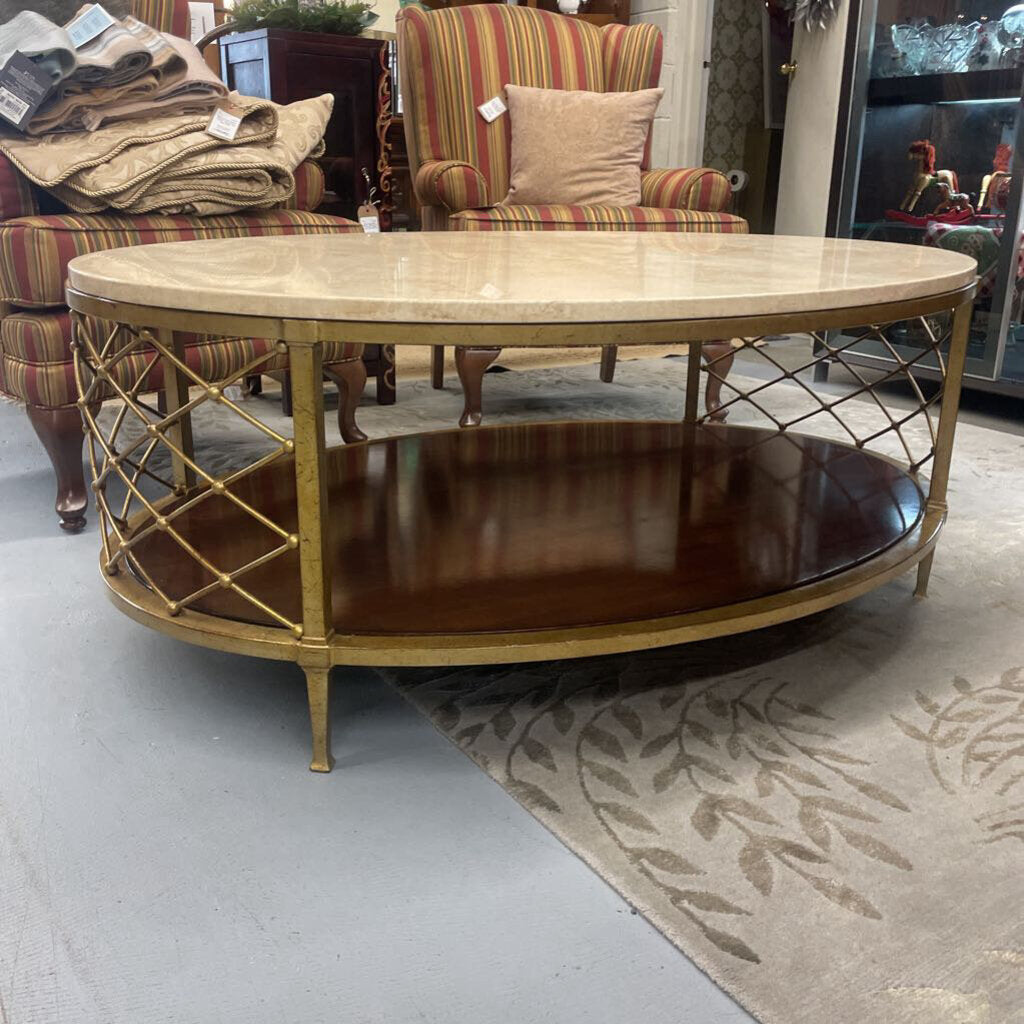 Lexington Marble Top Oval Coffee Table w Gold Base