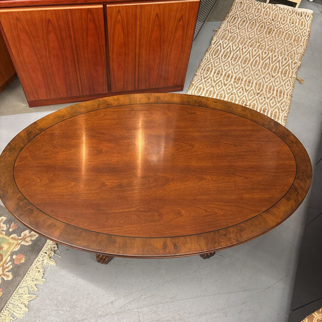 Oval Inlaid Mahogany Coffee Table w Pedestal