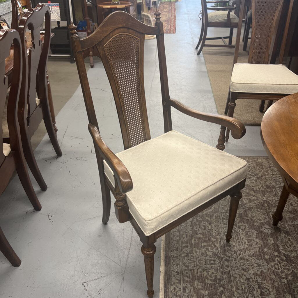Oval Walnut Dining Table w 8 Cane Cream Chairs & 2 - 18" Leaves