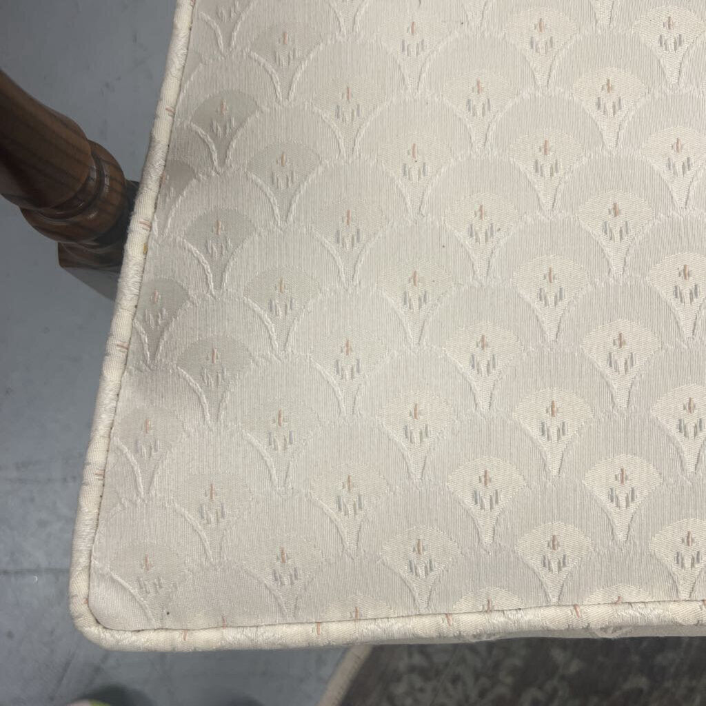 Ebony Finish Triangle Table w 6 Cream/Green Check Fabric Chairs