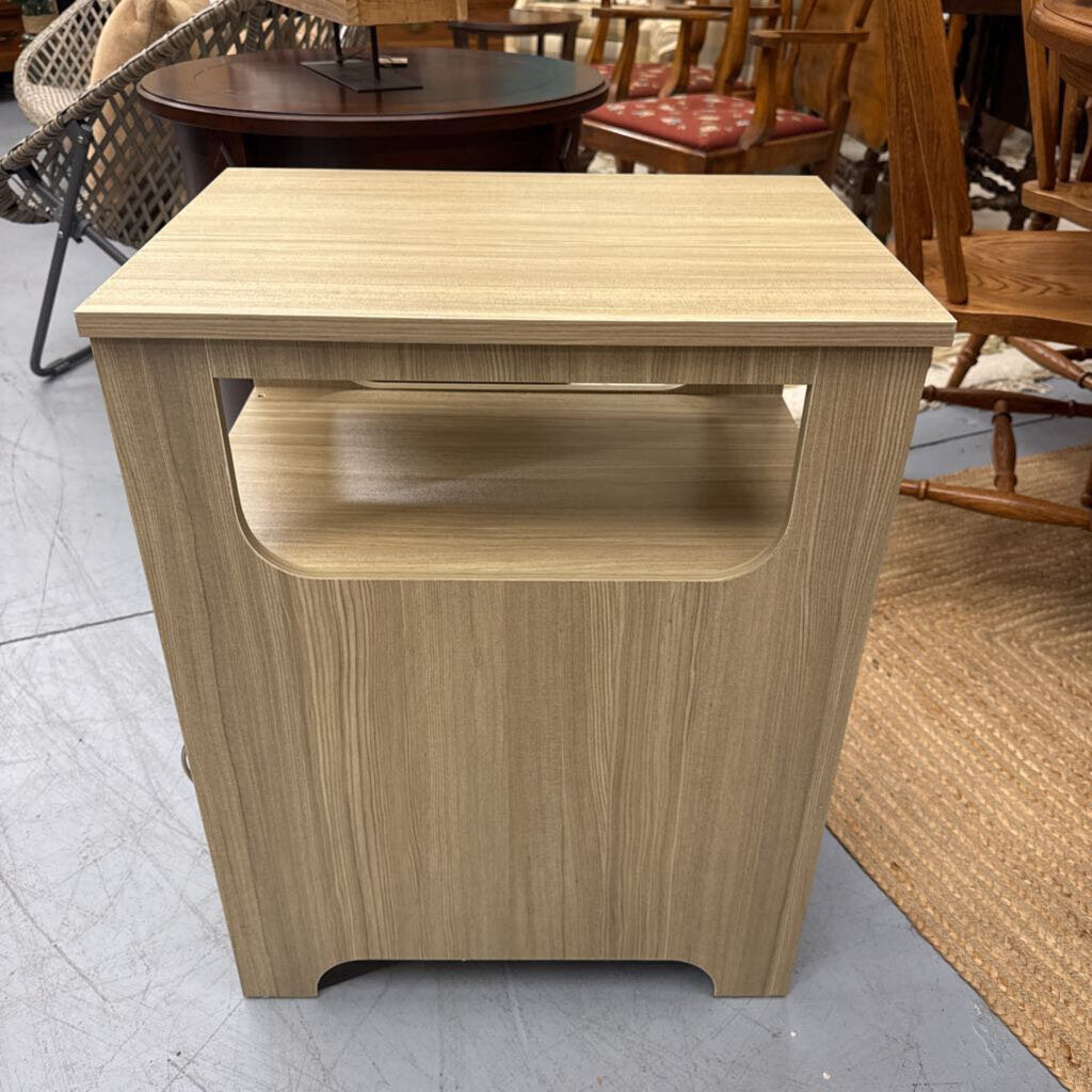 Taupe Veneer Side Table w Shelf & Lower Cabinet