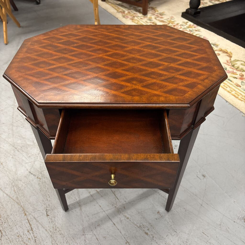 Vintage Federal Style Matched Grain Mahogany Octagonal Side Table