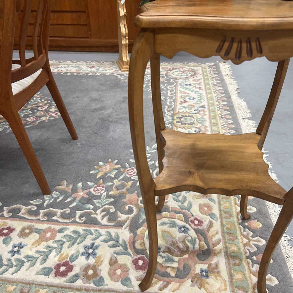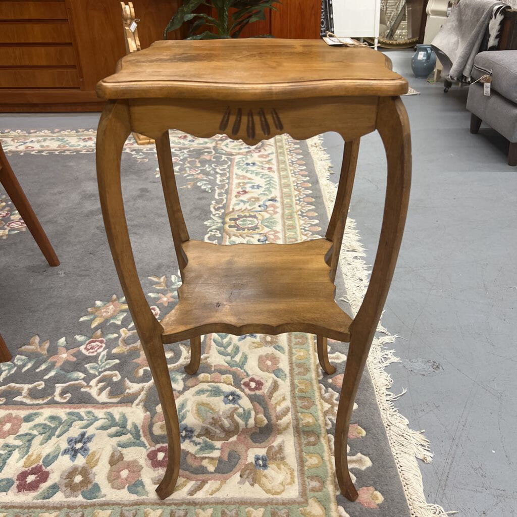 Vintage Wooden Side Table w Cabriole Legs & Lower Shelf