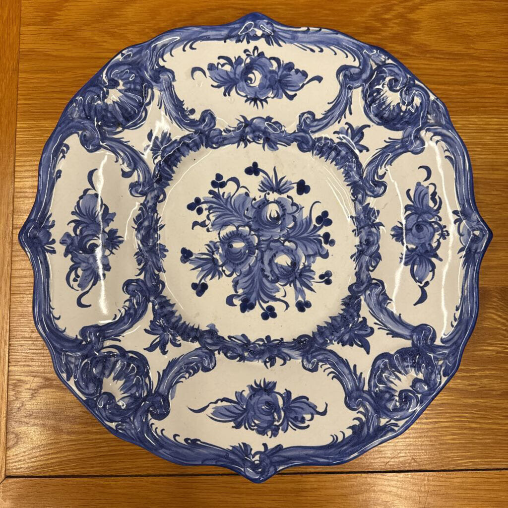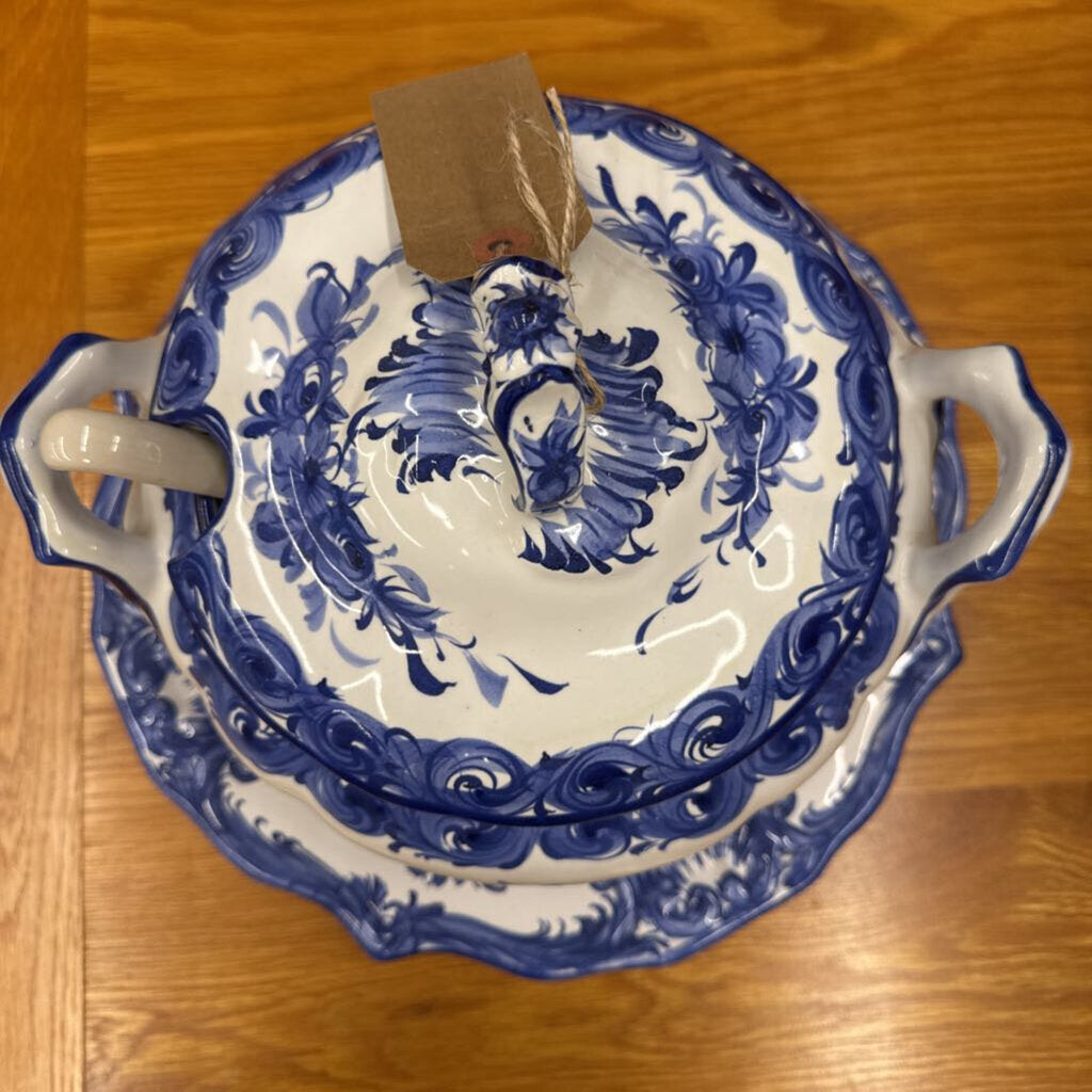 Blue & White Ceramic Soup Tureen w Scalloped Plate, Ladle - Made in Portugal