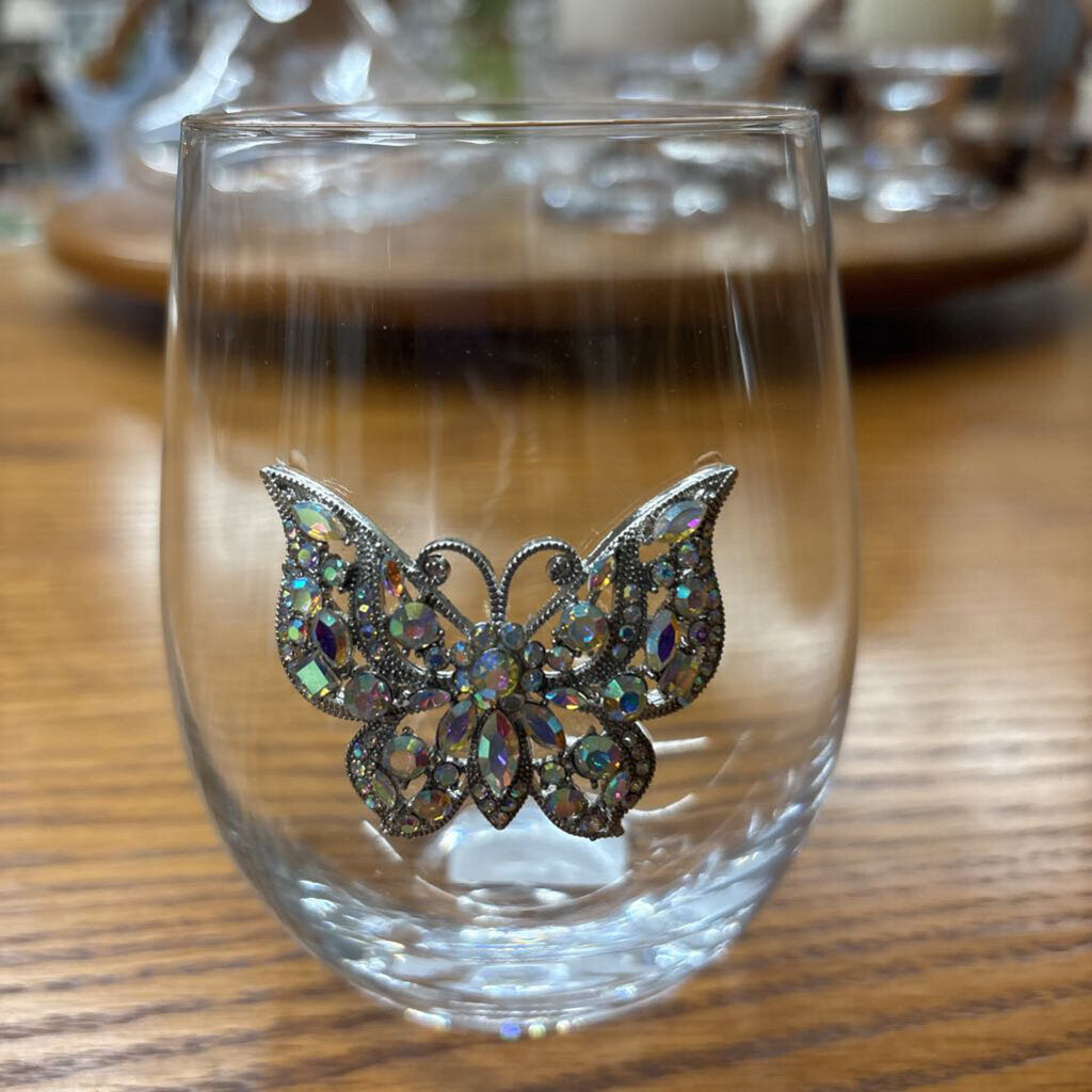 Jewel Butterfly Stemless Wine Glass BLING 726