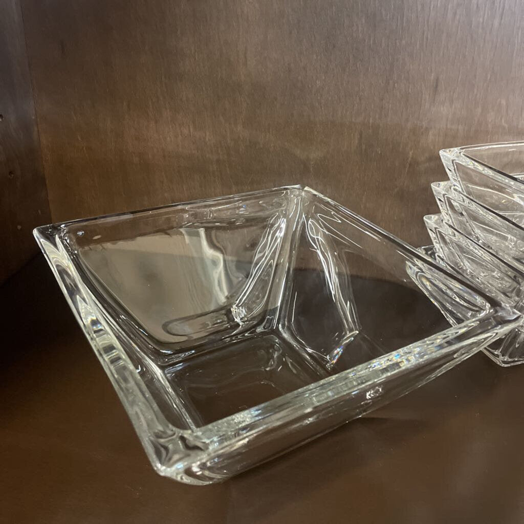SET of Vintage Art Deco Crystal Salad & 8 Serving Bowls