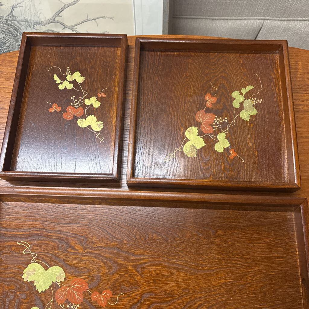 Vintage MCM 3 Piece Wooden Nesting Serving Trays (Japan)