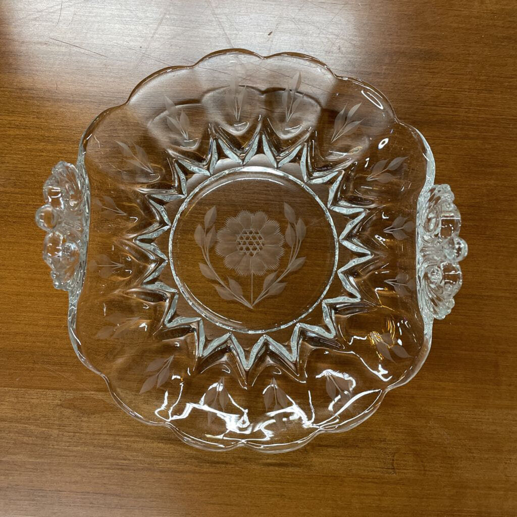 W.J. Hughes Folded Glass Plate w Scalloped Edges and Etched Cornflower Design