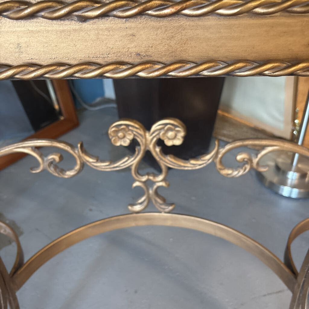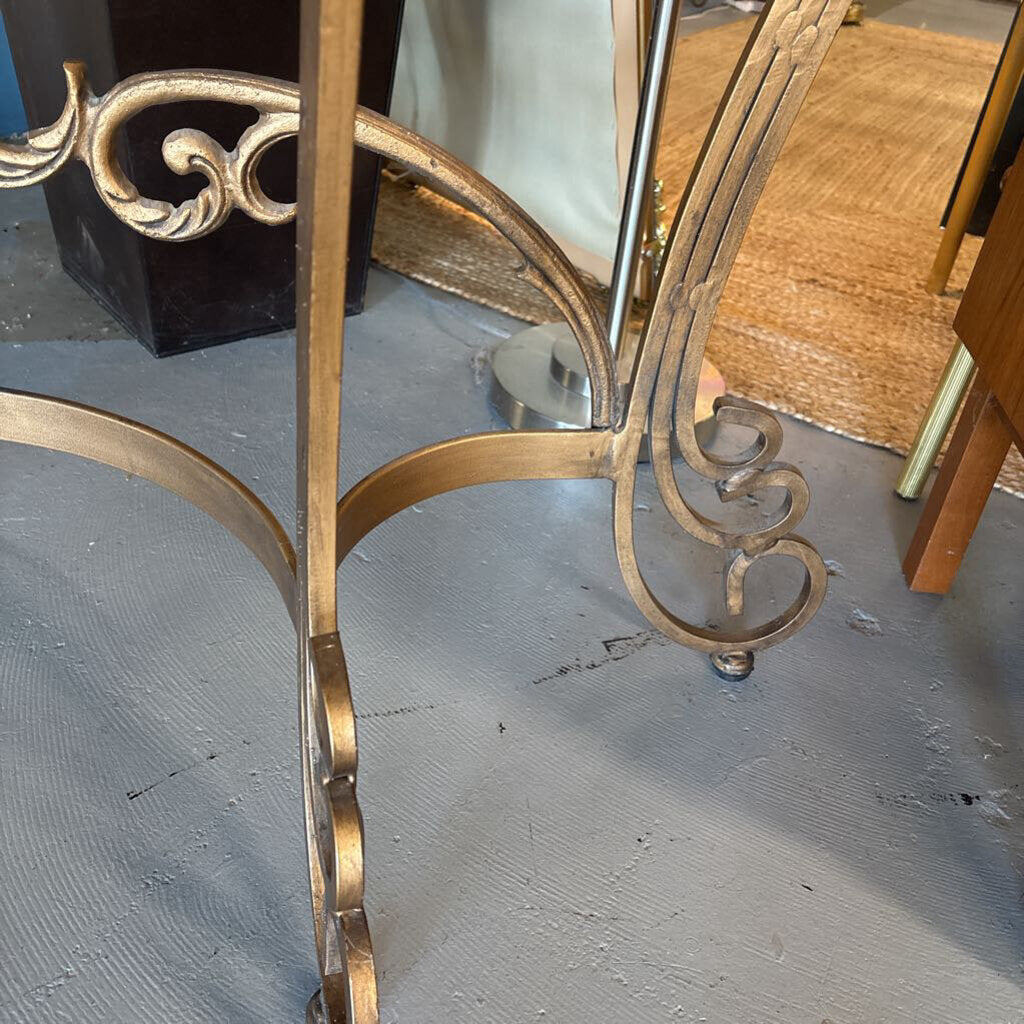 Half Moon Glass Console Table w Wrought Iron Gold Base - Reid & Siemonsen