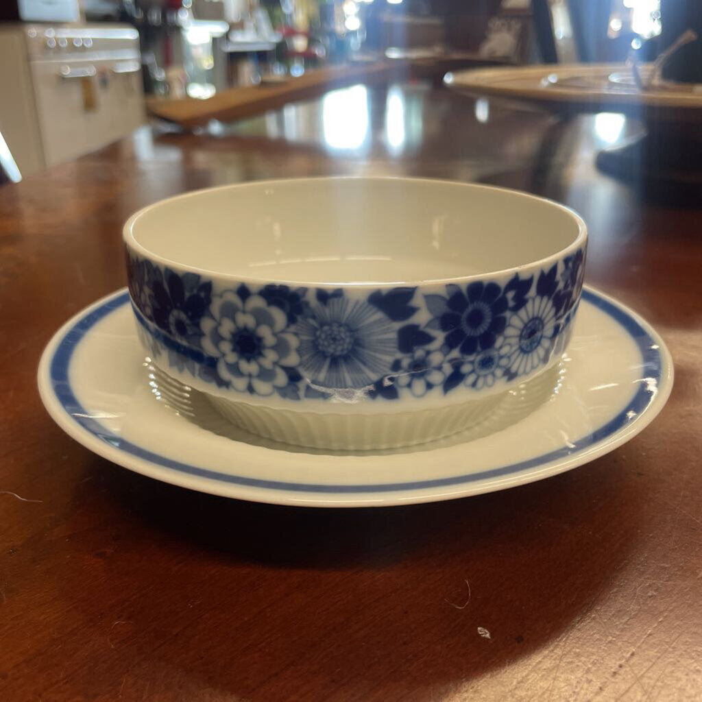 Kaiser Porcelain Echt Kobalt Blue & White Floral Condiment Bowl 5" and Plate 7"