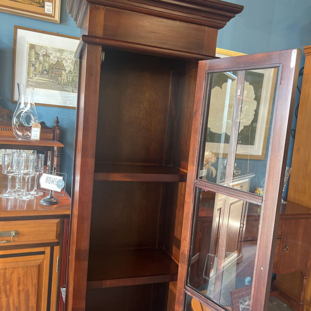 Mahogany Finish Curio Cabinet w 3 Built-In Shelves & Windowpane Front