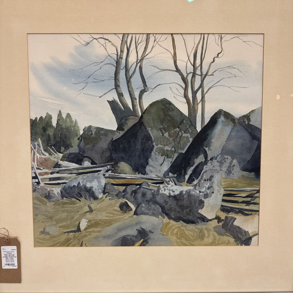 Rocks & Trees - Original Watercolour by CDN. WILLIAM SCOBIE HOUSTOUN