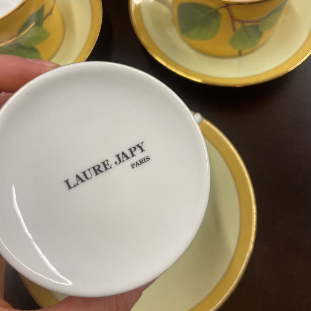 SET OF 3 Laure Japy Yellow Branch Teacups & Saucers