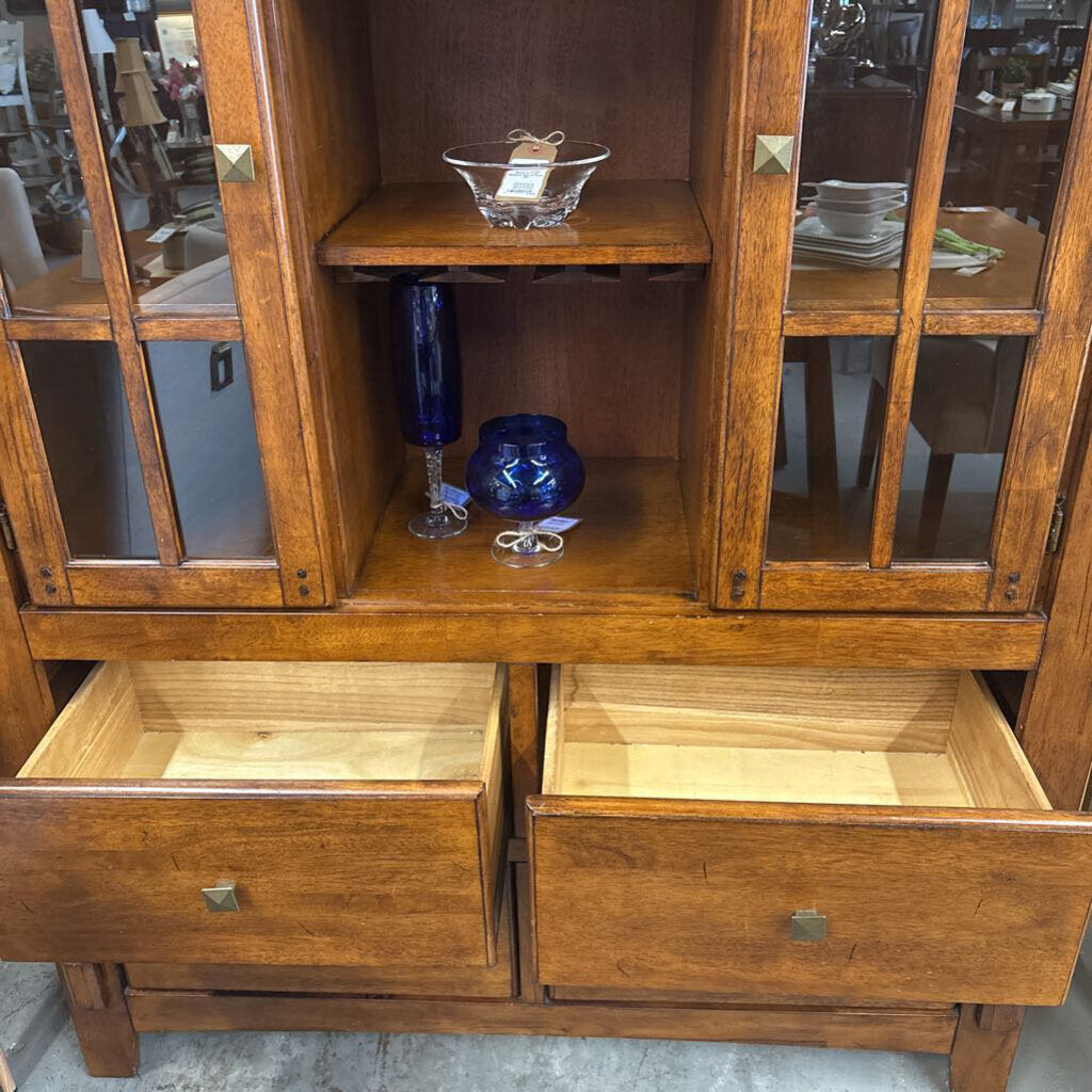 Walnut Finish Hutch w 2 Cabinets, 4 Drawers